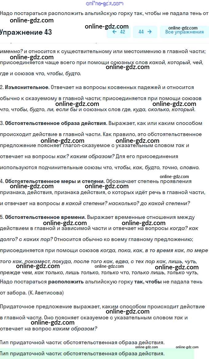 Готовые домашние задания по Русскому языку за 9 класс Тесты, творческие работы, проекты Нарушевич, Голубева 2019 - Вариант 1 Сложноподчинённое предложение 43