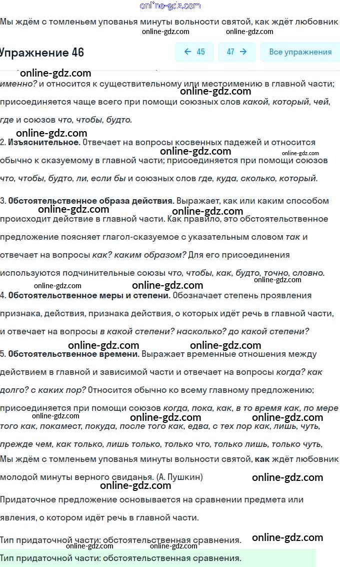 Готовые домашние задания по Русскому языку за 9 класс Тесты, творческие работы, проекты Нарушевич, Голубева 2019 - Вариант 1 Сложноподчинённое предложение 46