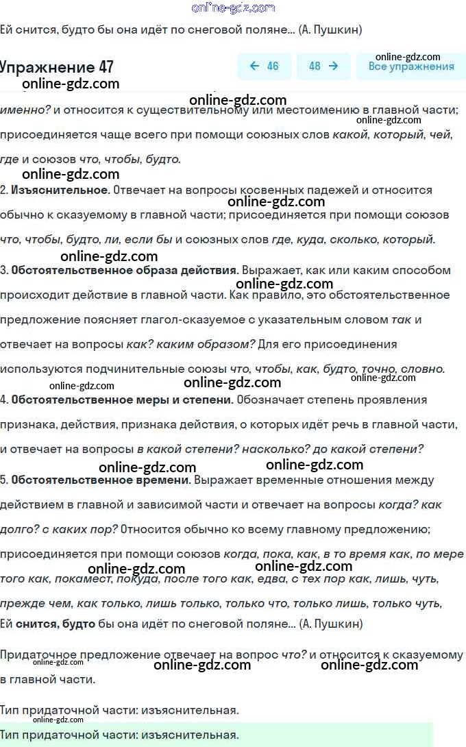 Готовые домашние задания по Русскому языку за 9 класс Тесты, творческие работы, проекты Нарушевич, Голубева 2019 - Вариант 1 Сложноподчинённое предложение 47