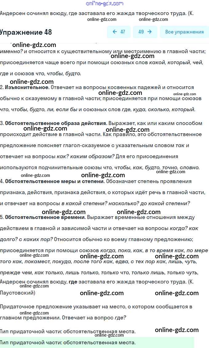 Готовые домашние задания по Русскому языку за 9 класс Тесты, творческие работы, проекты Нарушевич, Голубева 2019 - Вариант 1 Сложноподчинённое предложение 48