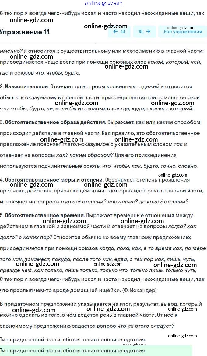 Готовые домашние задания по Русскому языку за 9 класс Тесты, творческие работы, проекты Нарушевич, Голубева 2019 - Вариант 2 Сложноподчинённое предложение 14