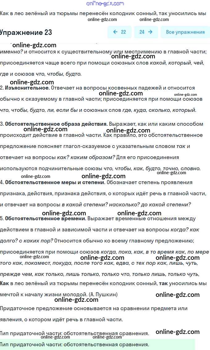 Готовые домашние задания по Русскому языку за 9 класс Тесты, творческие работы, проекты Нарушевич, Голубева 2019 - Вариант 2 Сложноподчинённое предложение 23