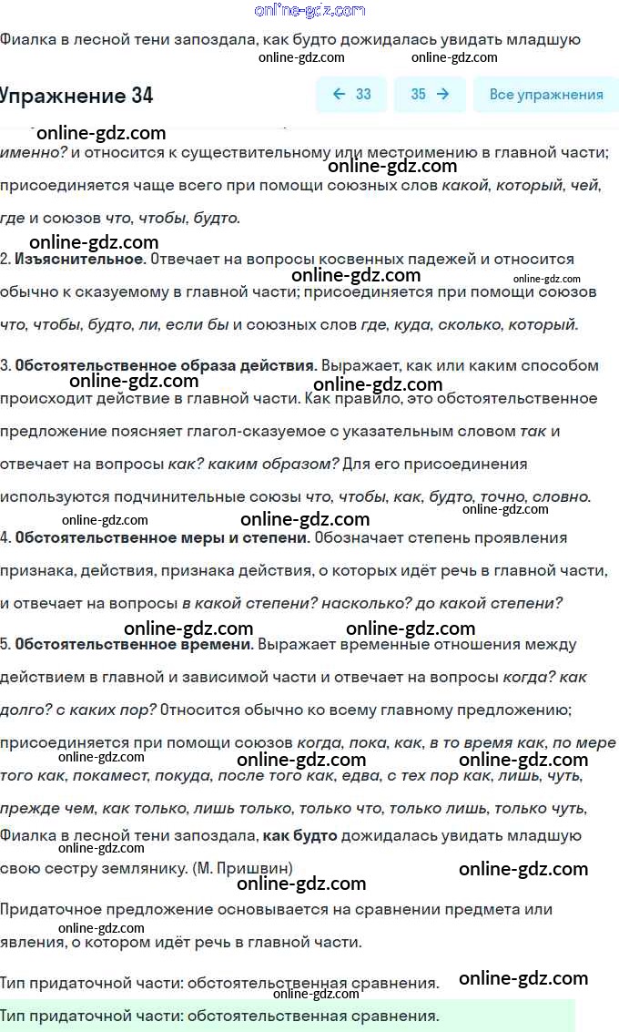 Готовые домашние задания по Русскому языку за 9 класс Тесты, творческие работы, проекты Нарушевич, Голубева 2019 - Вариант 2 Сложноподчинённое предложение 34