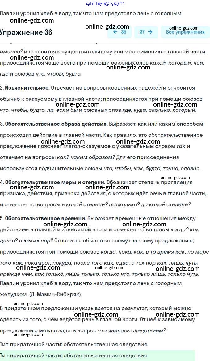 Готовые домашние задания по Русскому языку за 9 класс Тесты, творческие работы, проекты Нарушевич, Голубева 2019 - Вариант 2 Сложноподчинённое предложение 36