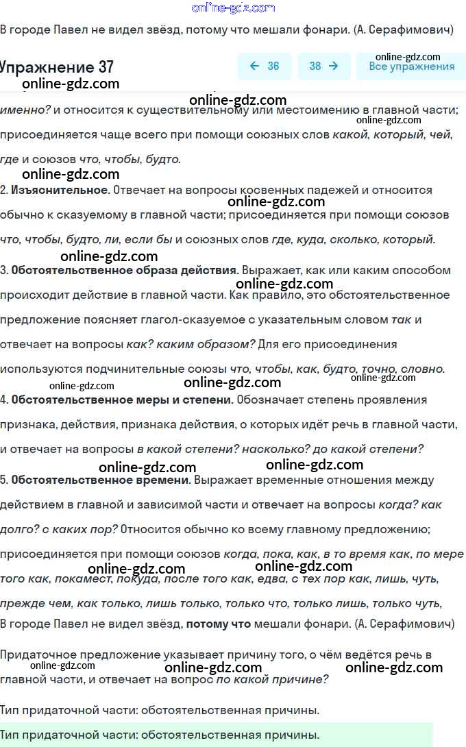 Готовые домашние задания по Русскому языку за 9 класс Тесты, творческие работы, проекты Нарушевич, Голубева 2019 - Вариант 2 Сложноподчинённое предложение 37