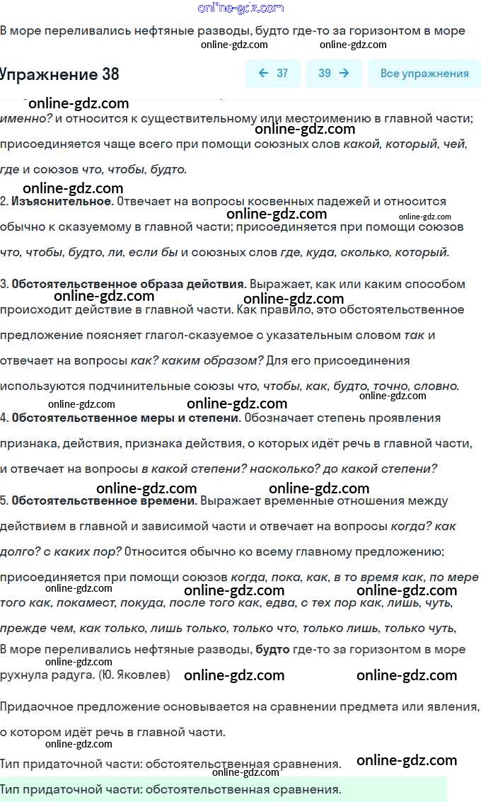 Готовые домашние задания по Русскому языку за 9 класс Тесты, творческие работы, проекты Нарушевич, Голубева 2019 - Вариант 2 Сложноподчинённое предложение 38
