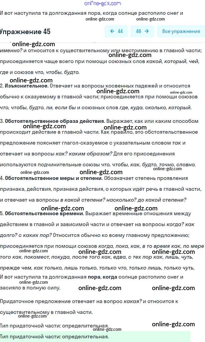 Готовые домашние задания по Русскому языку за 9 класс Тесты, творческие работы, проекты Нарушевич, Голубева 2019 - Вариант 2 Сложноподчинённое предложение 45