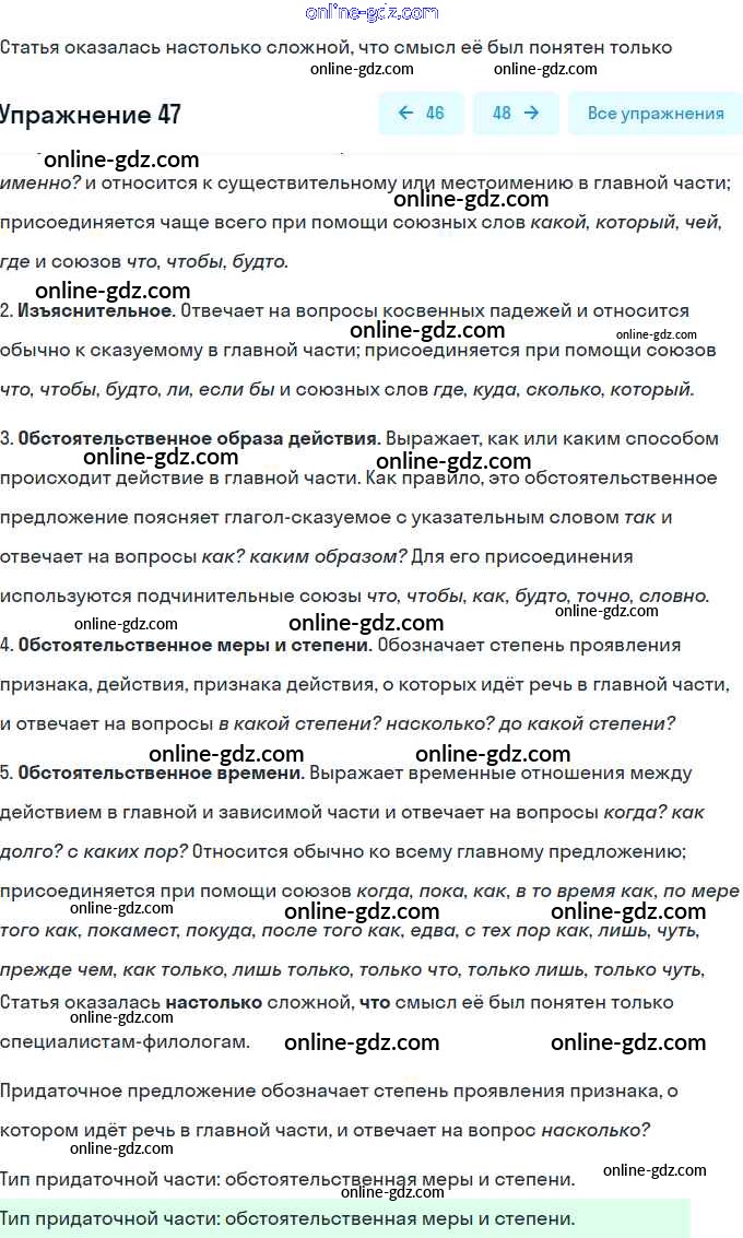 Готовые домашние задания по Русскому языку за 9 класс Тесты, творческие работы, проекты Нарушевич, Голубева 2019 - Вариант 2 Сложноподчинённое предложение 47