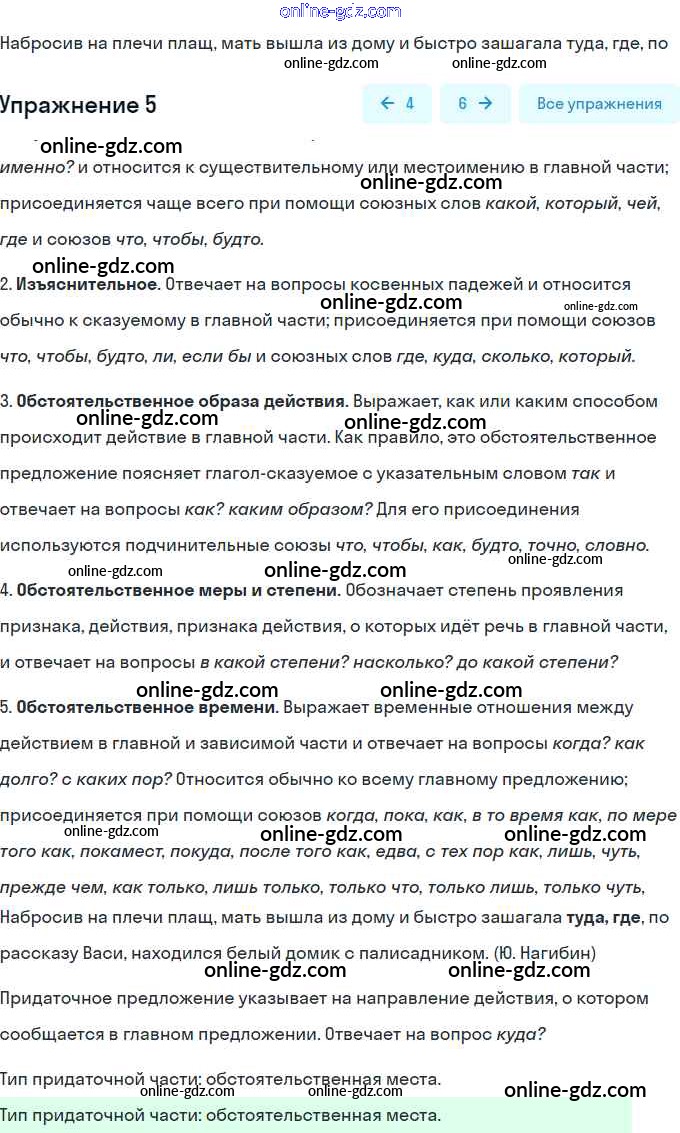 Готовые домашние задания по Русскому языку за 9 класс Тесты, творческие работы, проекты Нарушевич, Голубева 2019 - Вариант 2 Сложноподчинённое предложение 5