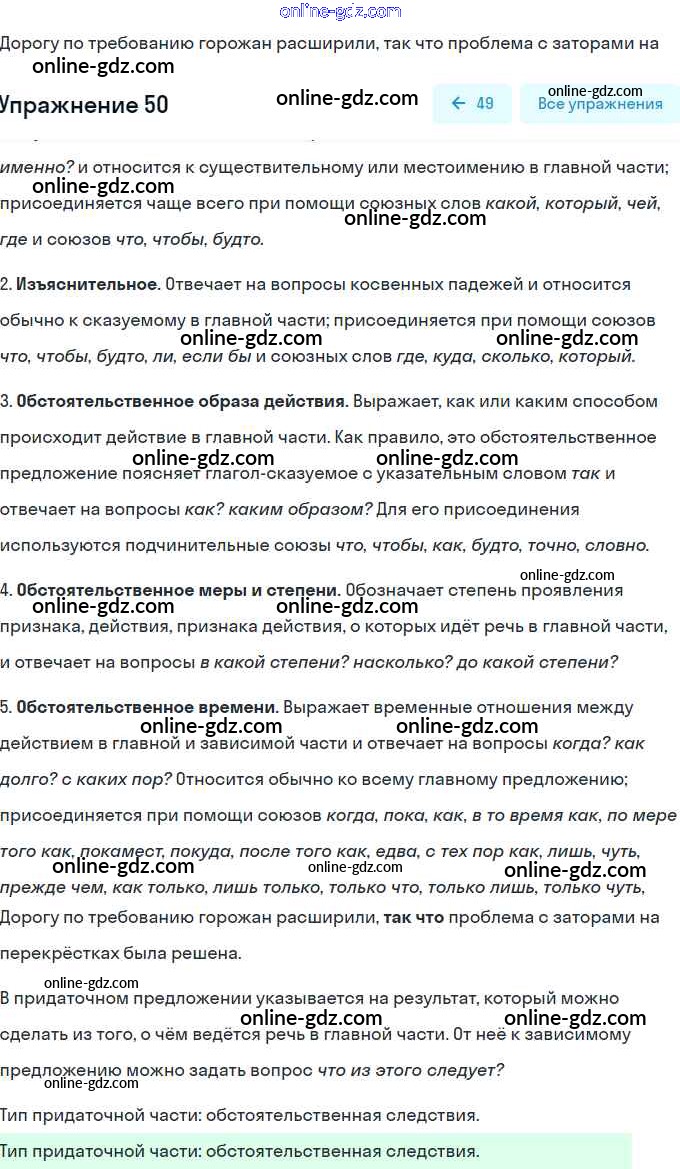 Готовые домашние задания по Русскому языку за 9 класс Тесты, творческие работы, проекты Нарушевич, Голубева 2019 - Вариант 2 Сложноподчинённое предложение 50