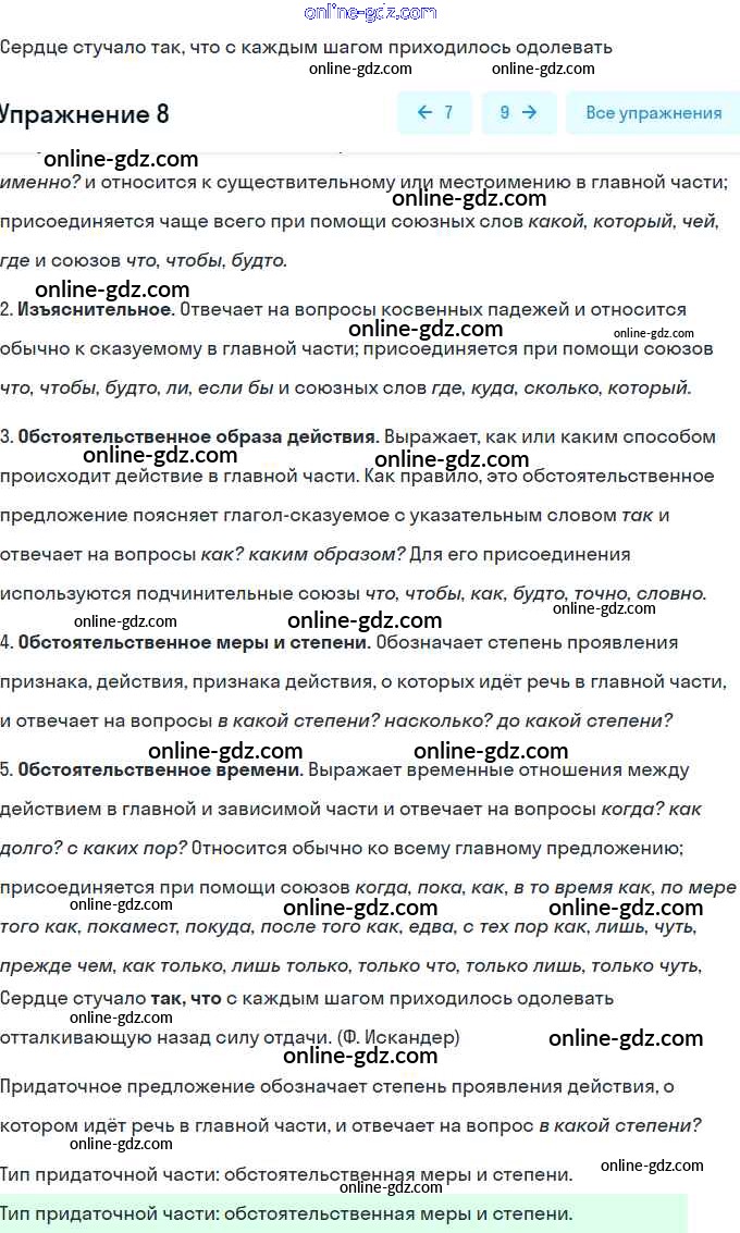 Готовые домашние задания по Русскому языку за 9 класс Тесты, творческие работы, проекты Нарушевич, Голубева 2019 - Вариант 2 Сложноподчинённое предложение 8