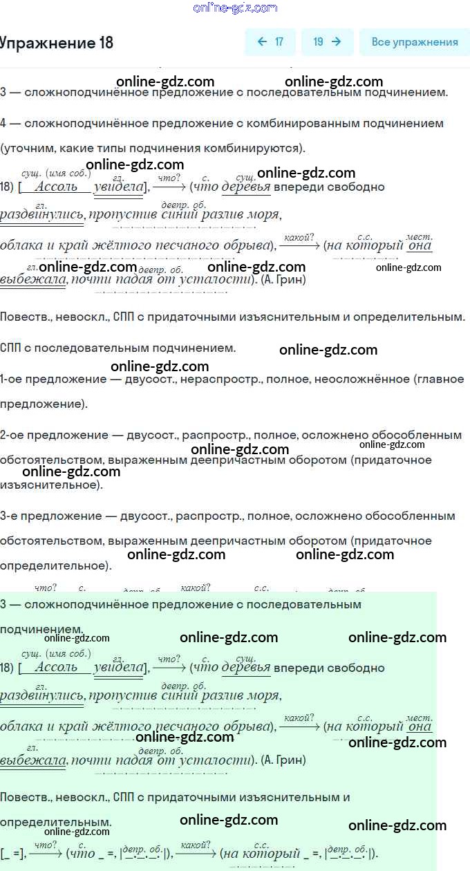 Готовые домашние задания по Русскому языку за 9 класс Тесты, творческие работы, проекты Нарушевич, Голубева 2019 - Вариант 1 Сложноподчинённое предложение c несколькими придаточными 18
