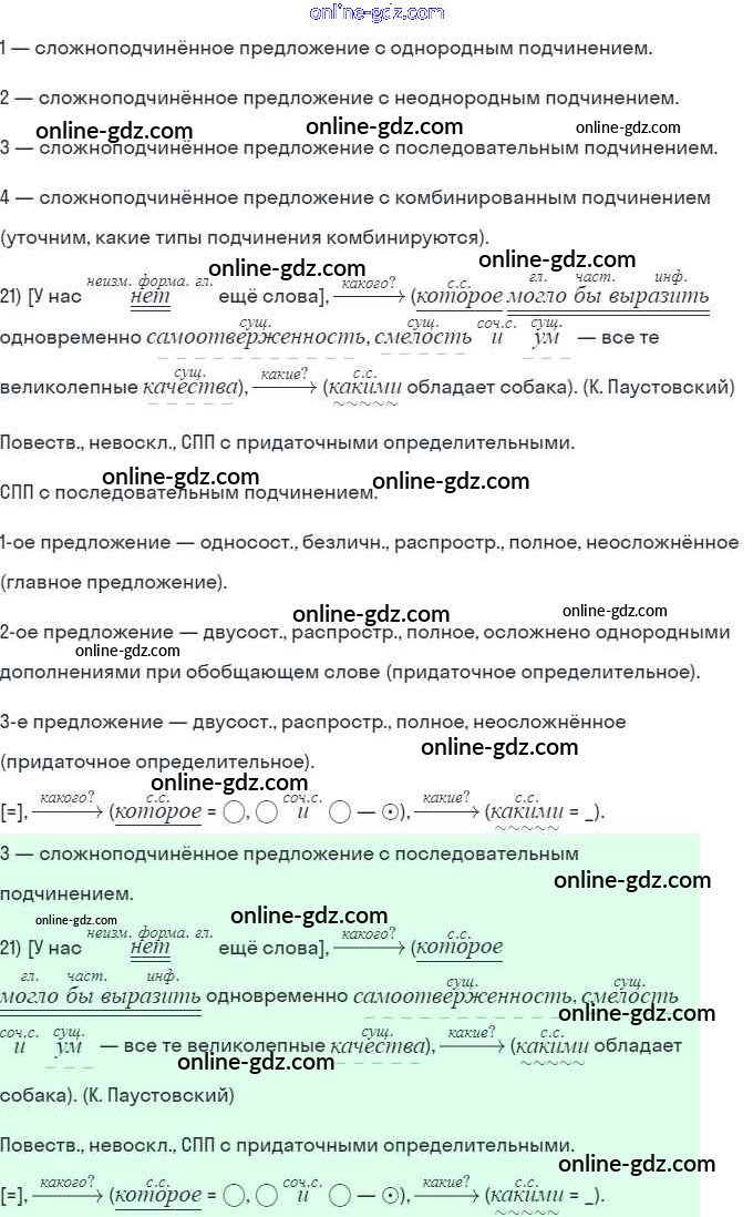 Готовые домашние задания по Русскому языку за 9 класс Тесты, творческие работы, проекты Нарушевич, Голубева 2019 - Вариант 1 Сложноподчинённое предложение c несколькими придаточными 21