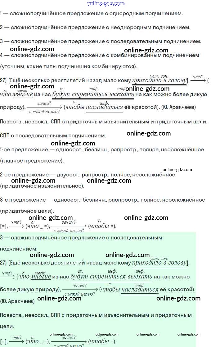 Готовые домашние задания по Русскому языку за 9 класс Тесты, творческие работы, проекты Нарушевич, Голубева 2019 - Вариант 1 Сложноподчинённое предложение c несколькими придаточными 27