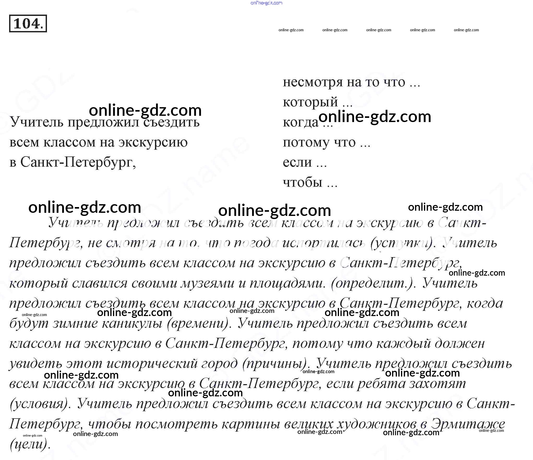 Готовые домашние задания по Русскому языку за 9 класс Учебник Разумовская, Львова Вертикаль 2018 - Упражнения 104