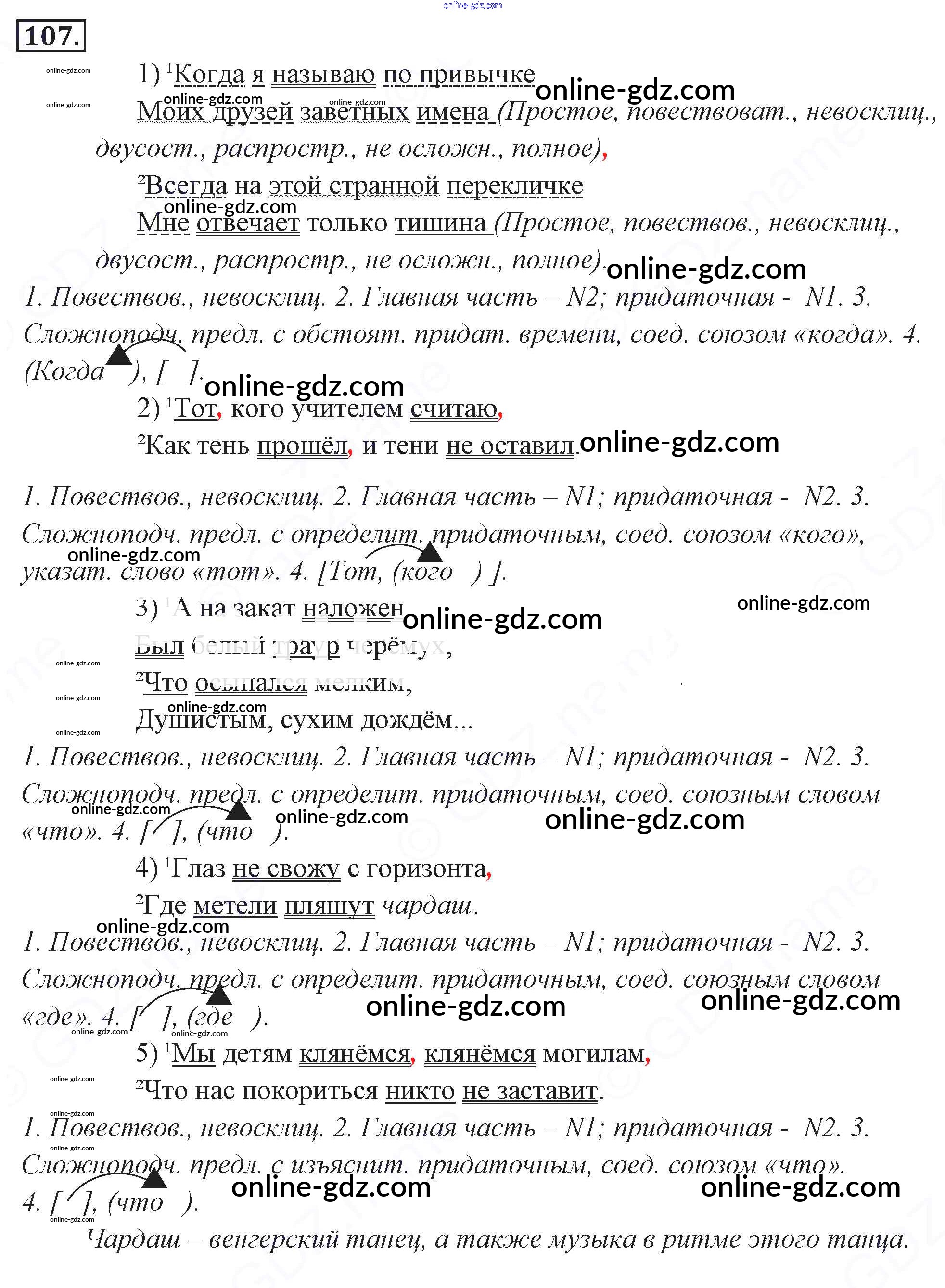 Готовые домашние задания по Русскому языку за 9 класс Учебник Разумовская, Львова Вертикаль 2018 - Упражнения 107
