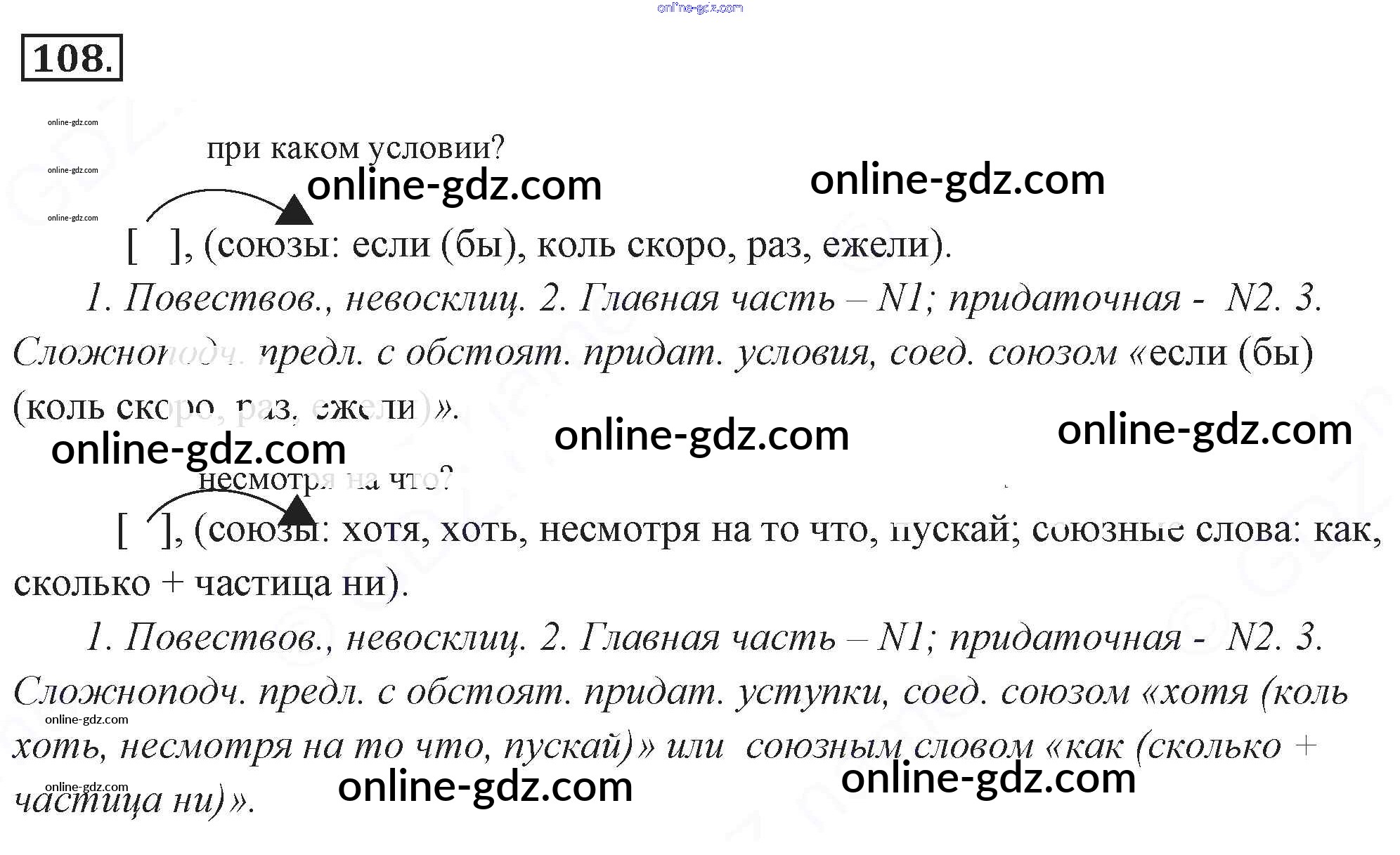 Готовые домашние задания по Русскому языку за 9 класс Учебник Разумовская, Львова Вертикаль 2018 - Упражнения 108
