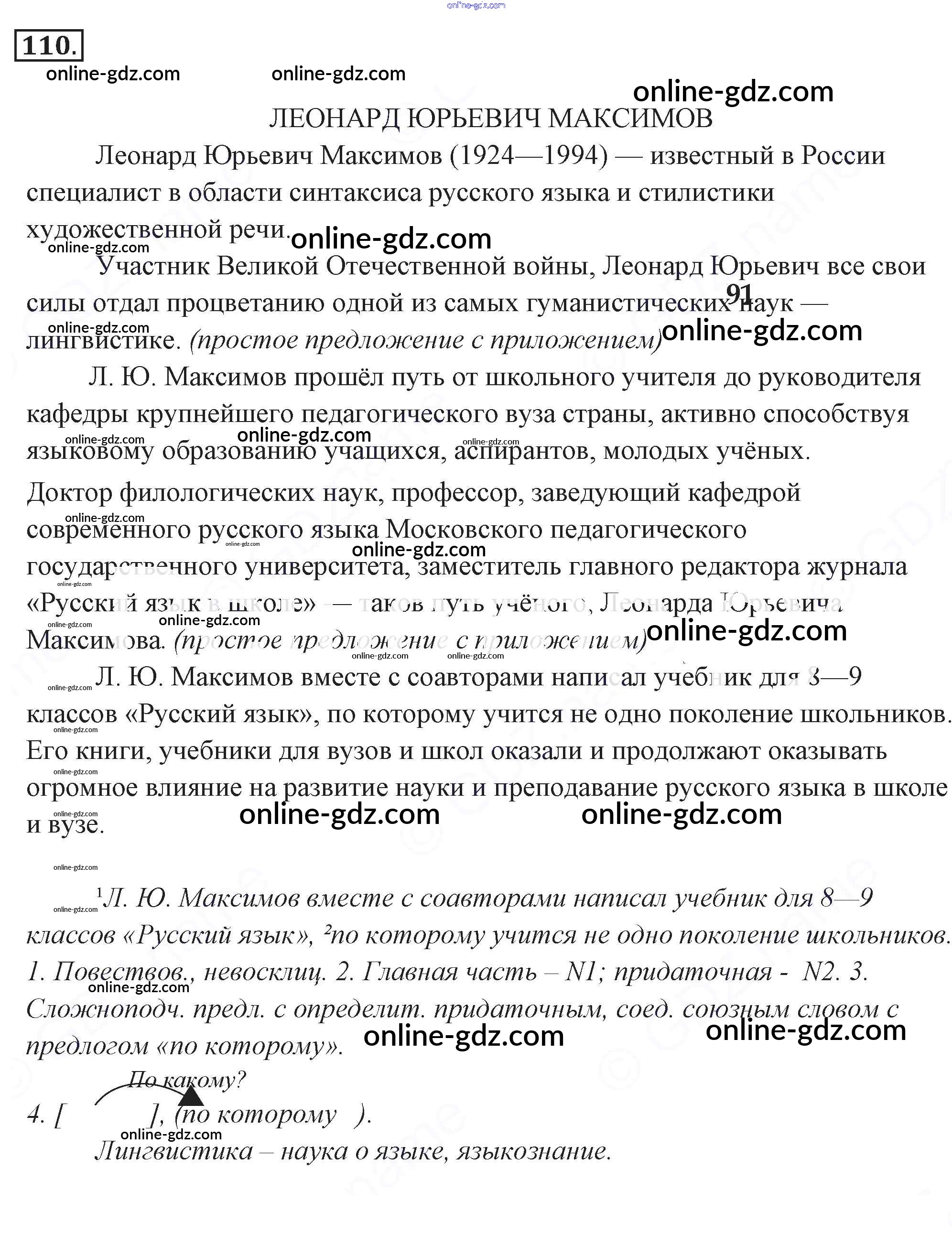 Готовые домашние задания по Русскому языку за 9 класс Учебник Разумовская, Львова Вертикаль 2018 - Упражнения 110