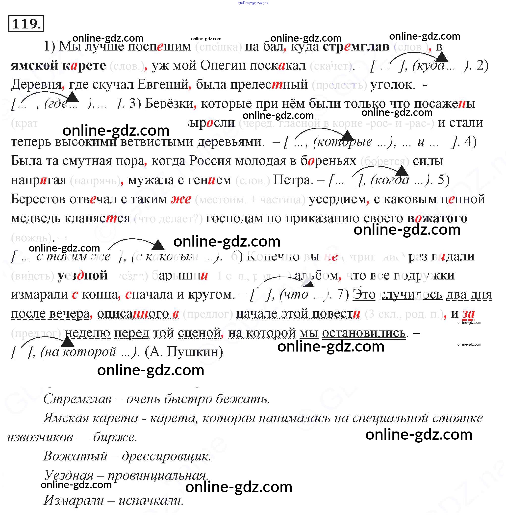 Готовые домашние задания по Русскому языку за 9 класс Учебник Разумовская, Львова Вертикаль 2018 - Упражнения 119