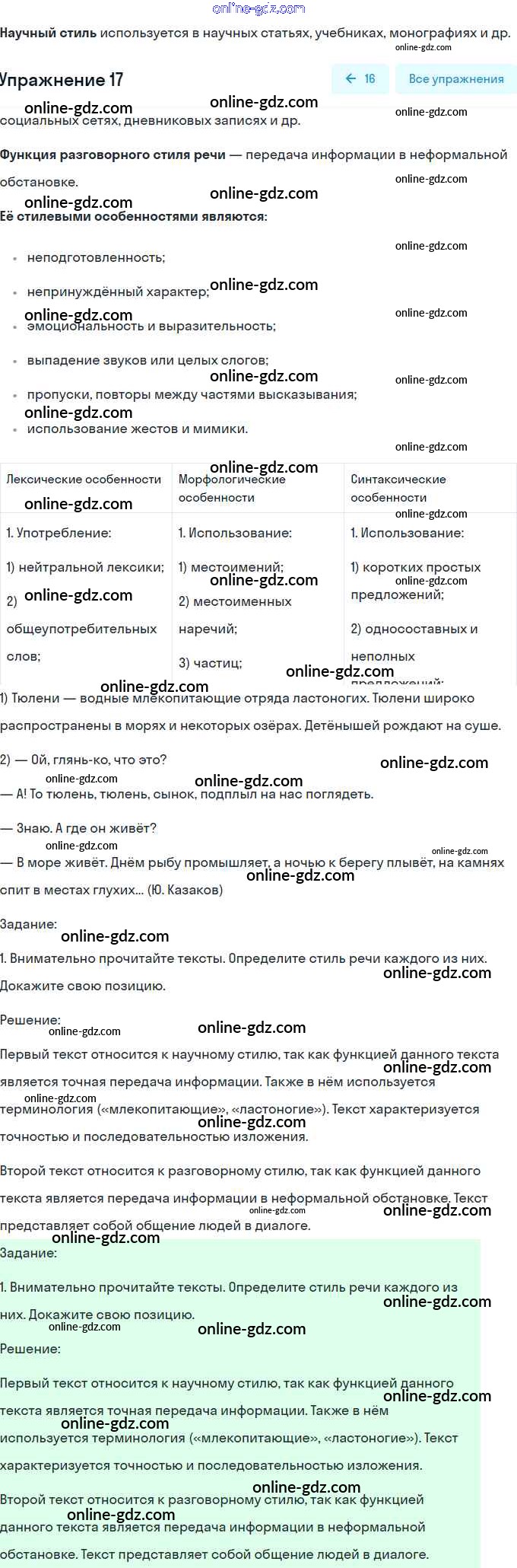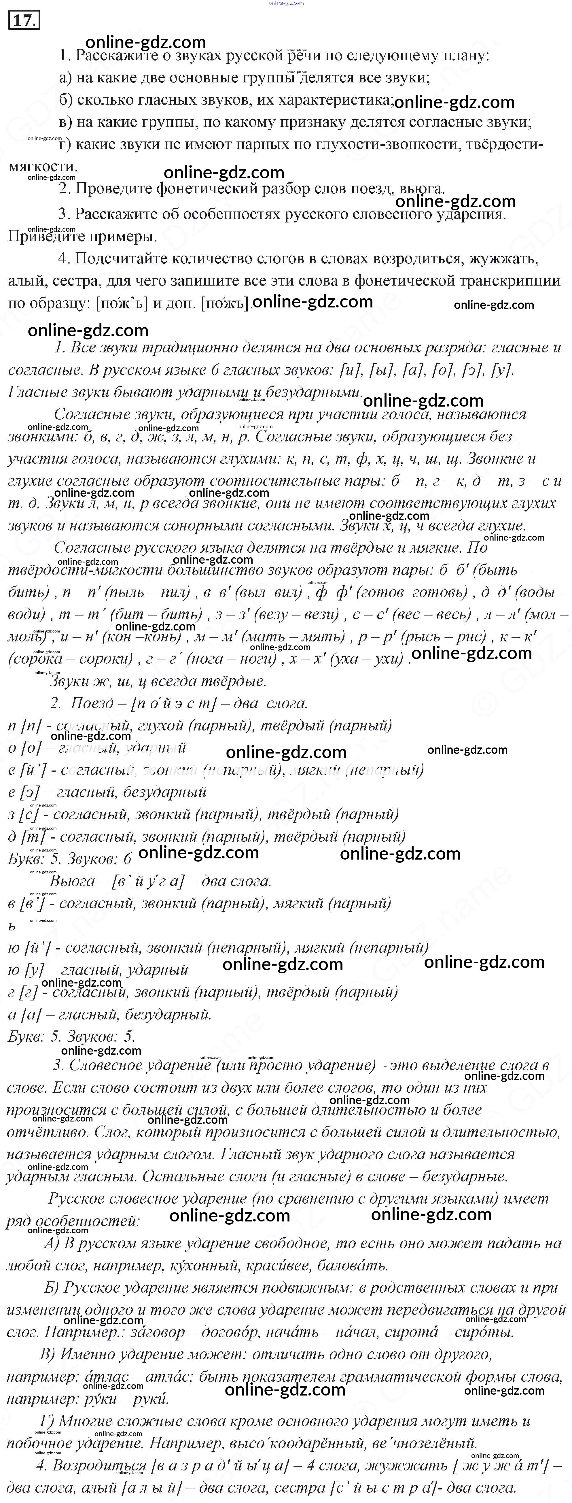 Готовые домашние задания по Русскому языку за 9 класс Учебник Разумовская, Львова Вертикаль 2018 - Упражнения 17