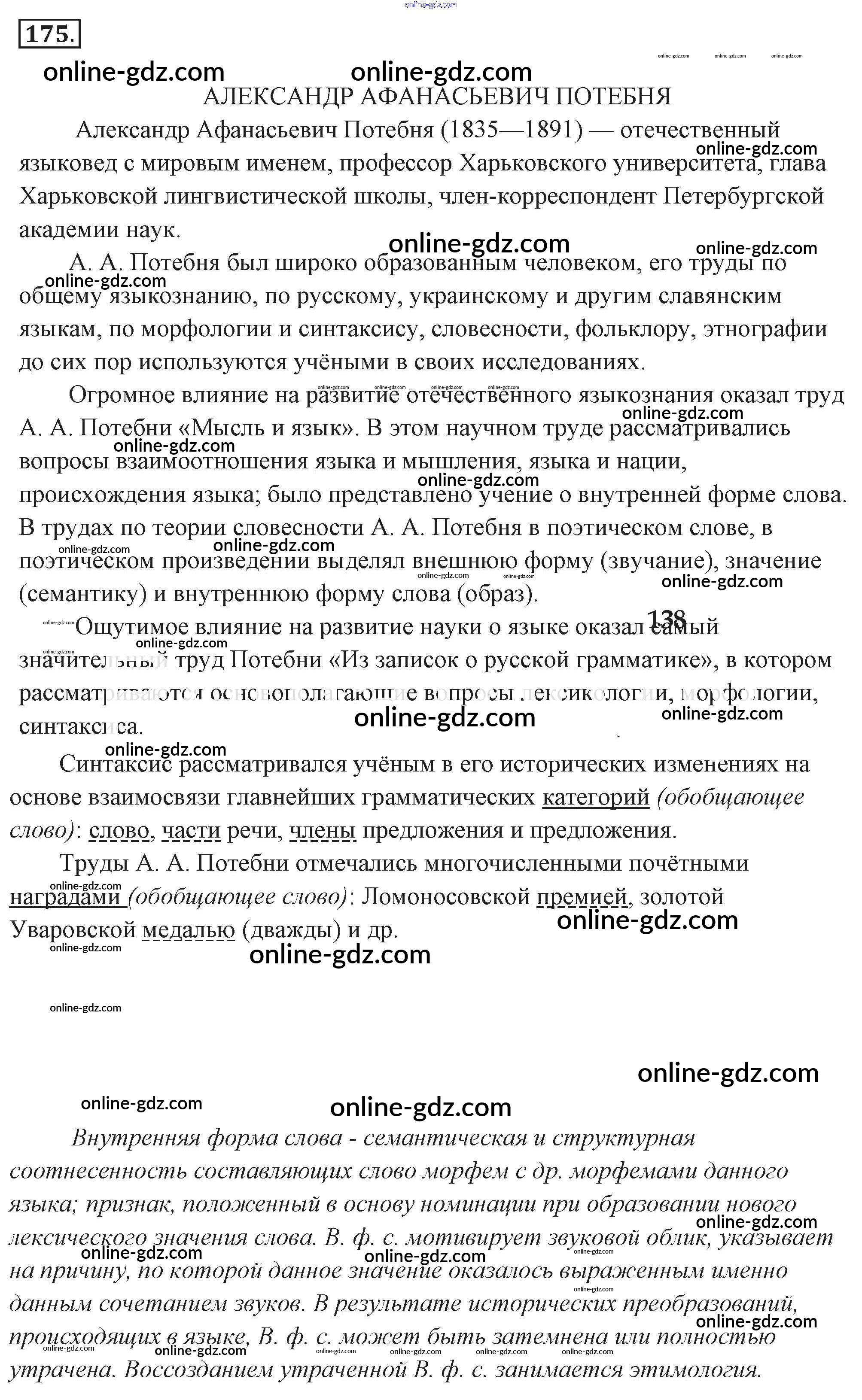 Готовые домашние задания по Русскому языку за 9 класс Учебник Разумовская, Львова Вертикаль 2018 - Упражнения 175