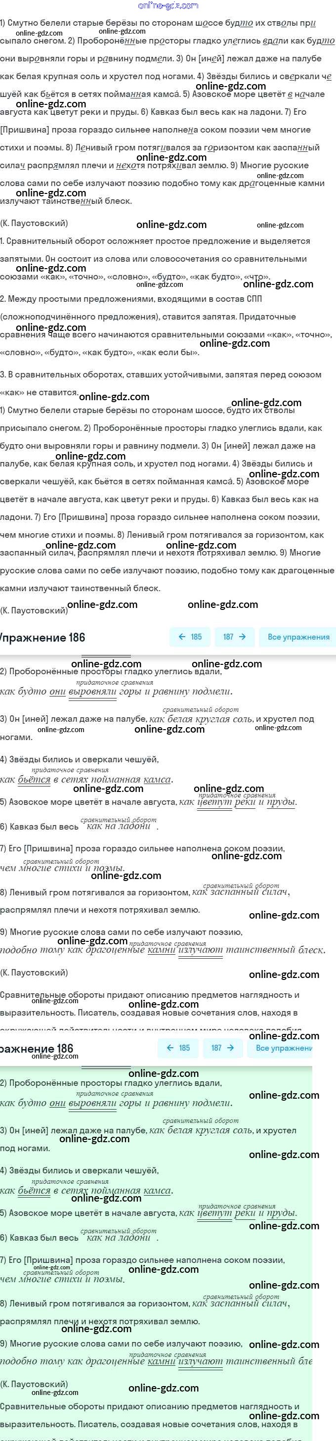Готовые домашние задания по Русскому языку за 9 класс Учебник Разумовская, Львова Вертикаль 2018 - Упражнения 186