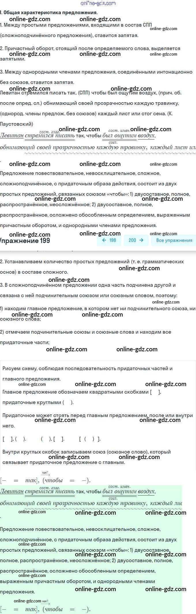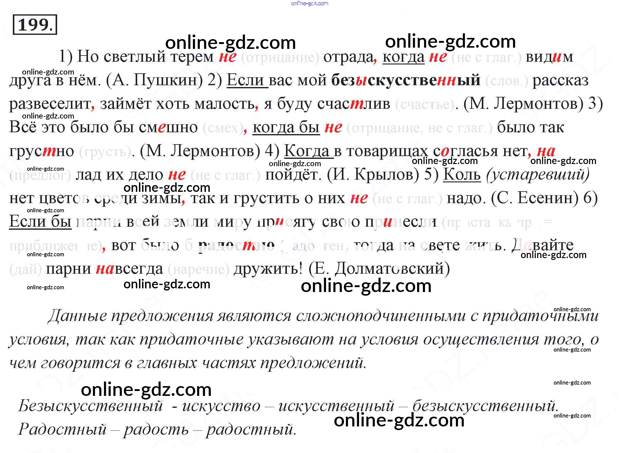 Готовые домашние задания по Русскому языку за 9 класс Учебник Разумовская, Львова Вертикаль 2018 - Упражнения 199