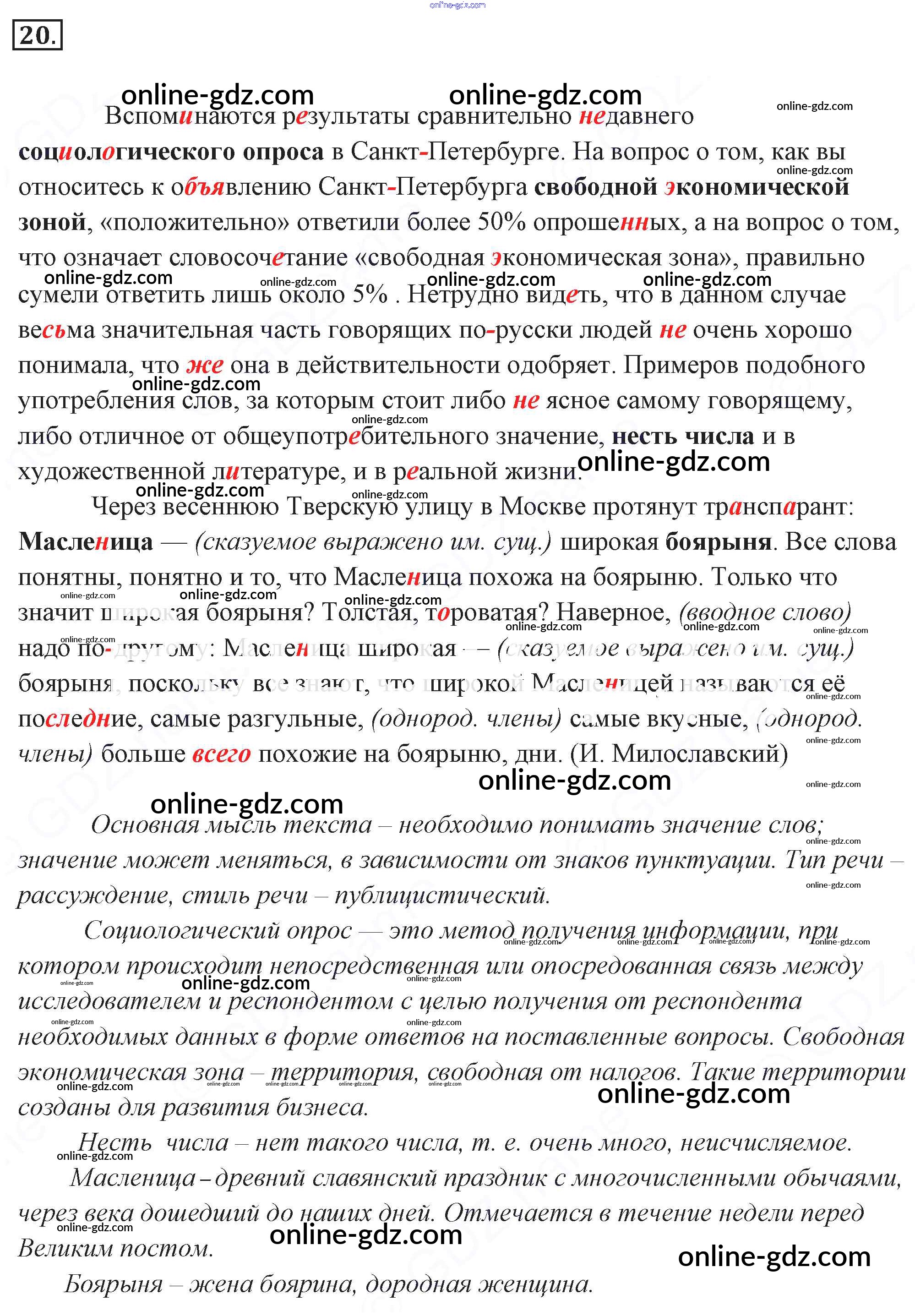 Готовые домашние задания по Русскому языку за 9 класс Учебник Разумовская, Львова Вертикаль 2018 - Упражнения 20
