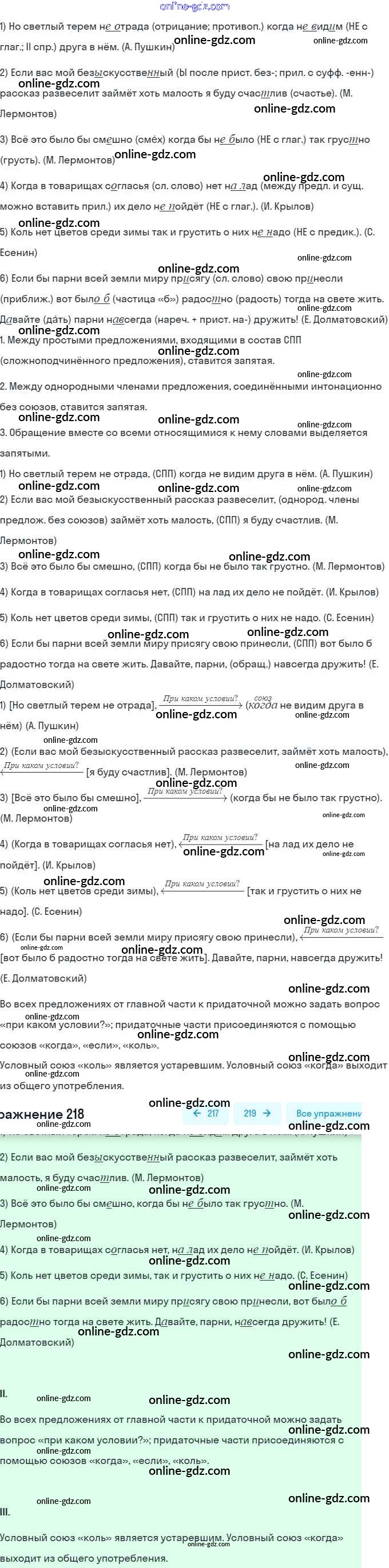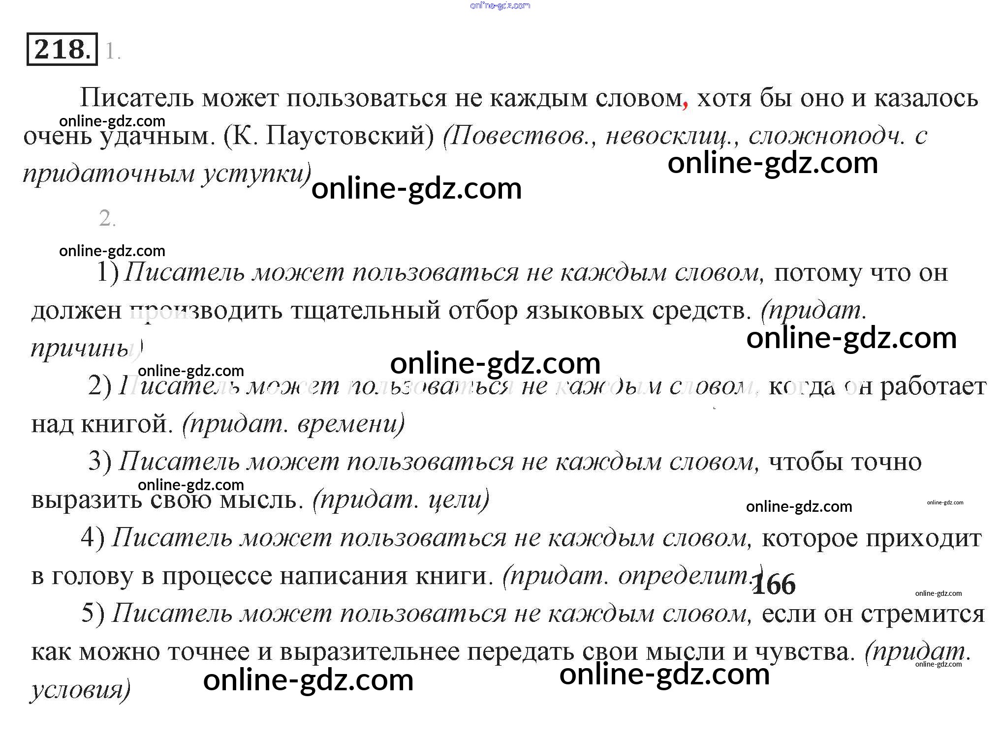 Готовые домашние задания по Русскому языку за 9 класс Учебник Разумовская, Львова Вертикаль 2018 - Упражнения 218