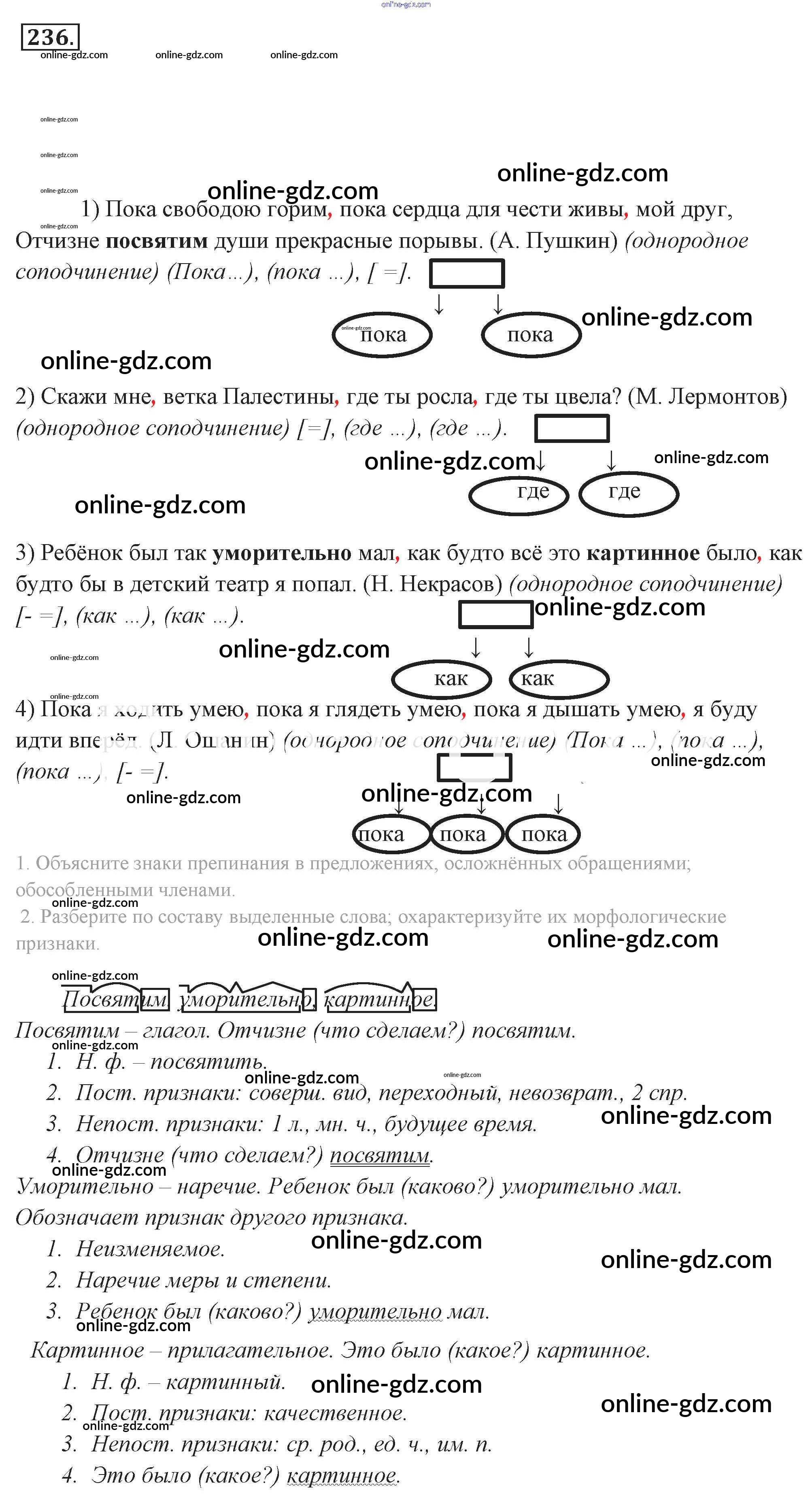 Готовые домашние задания по Русскому языку за 9 класс Учебник Разумовская, Львова Вертикаль 2018 - Упражнения 236