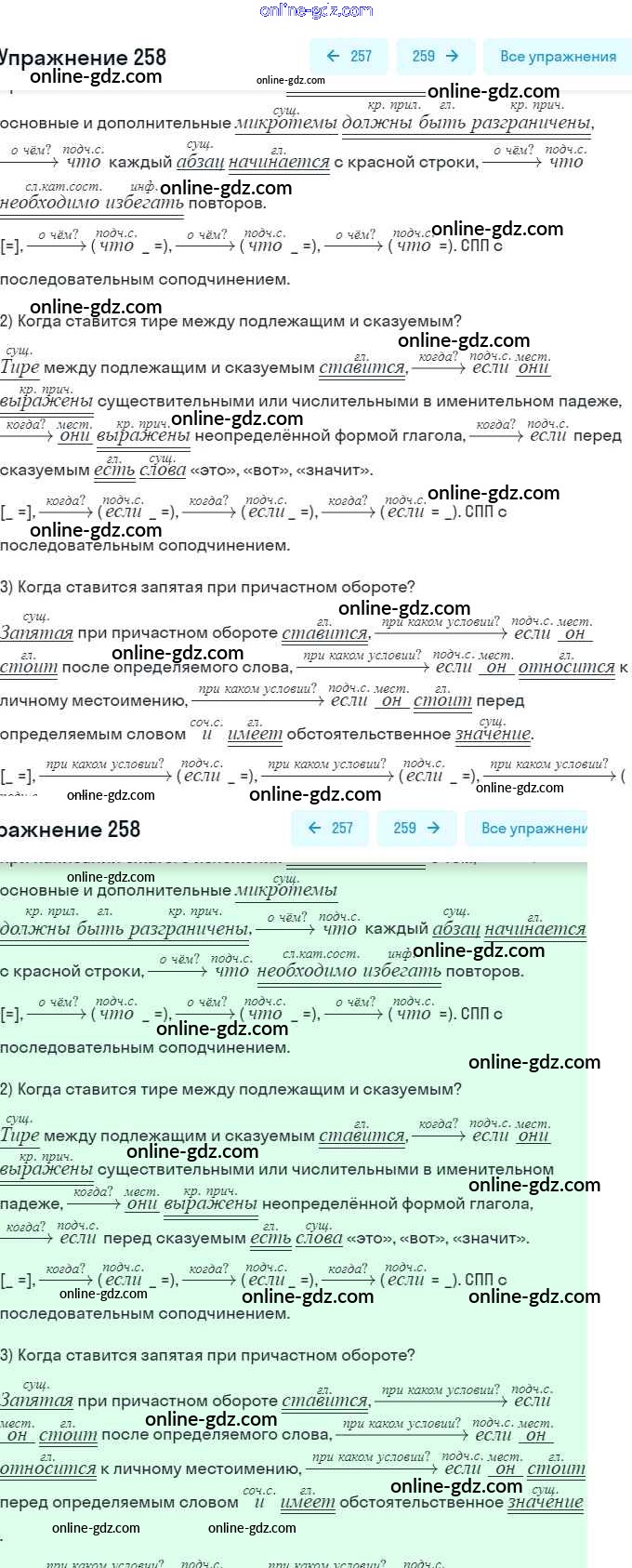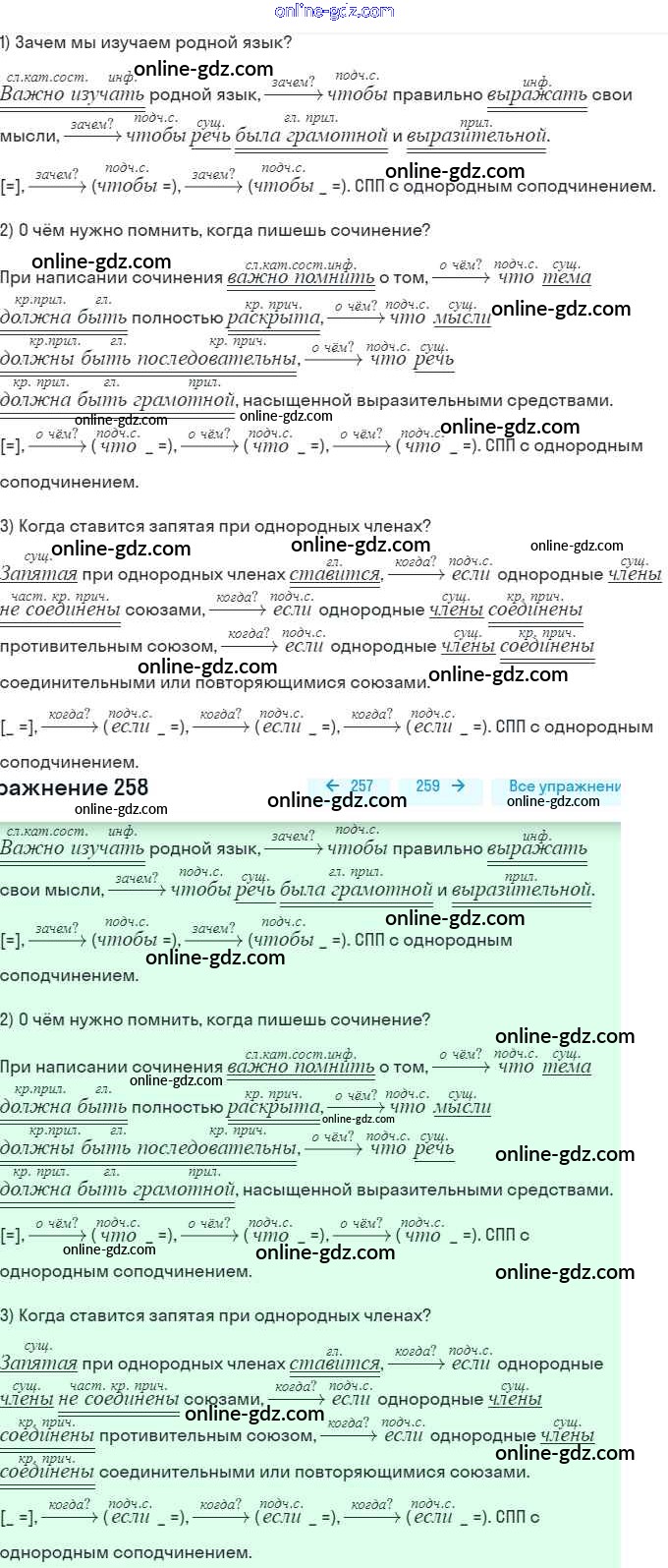 Готовые домашние задания по Русскому языку за 9 класс Учебник Разумовская, Львова Вертикаль 2018 - Упражнения 258