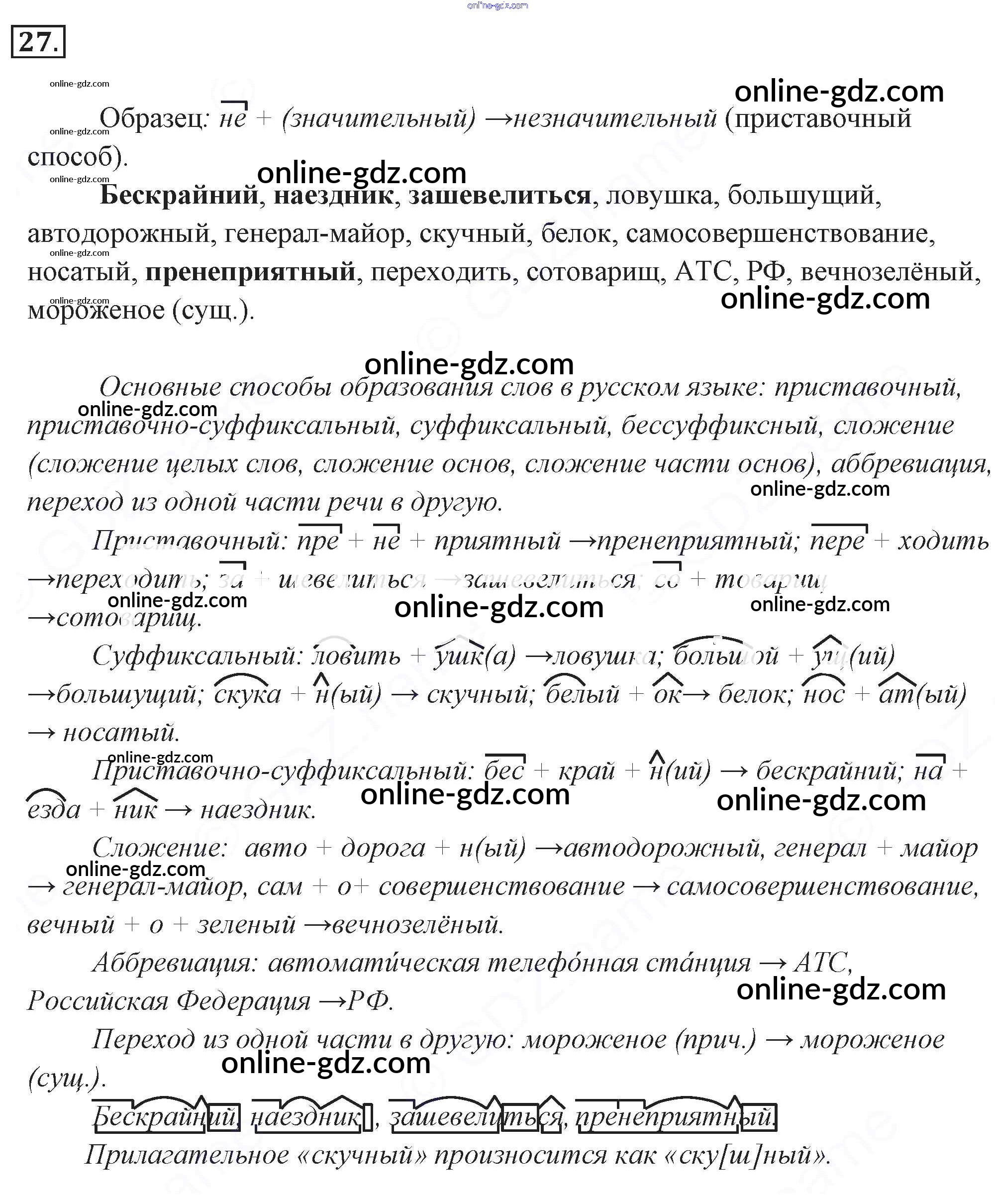 Готовые домашние задания по Русскому языку за 9 класс Учебник Разумовская, Львова Вертикаль 2018 - Упражнения 27