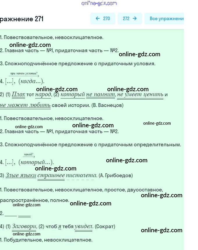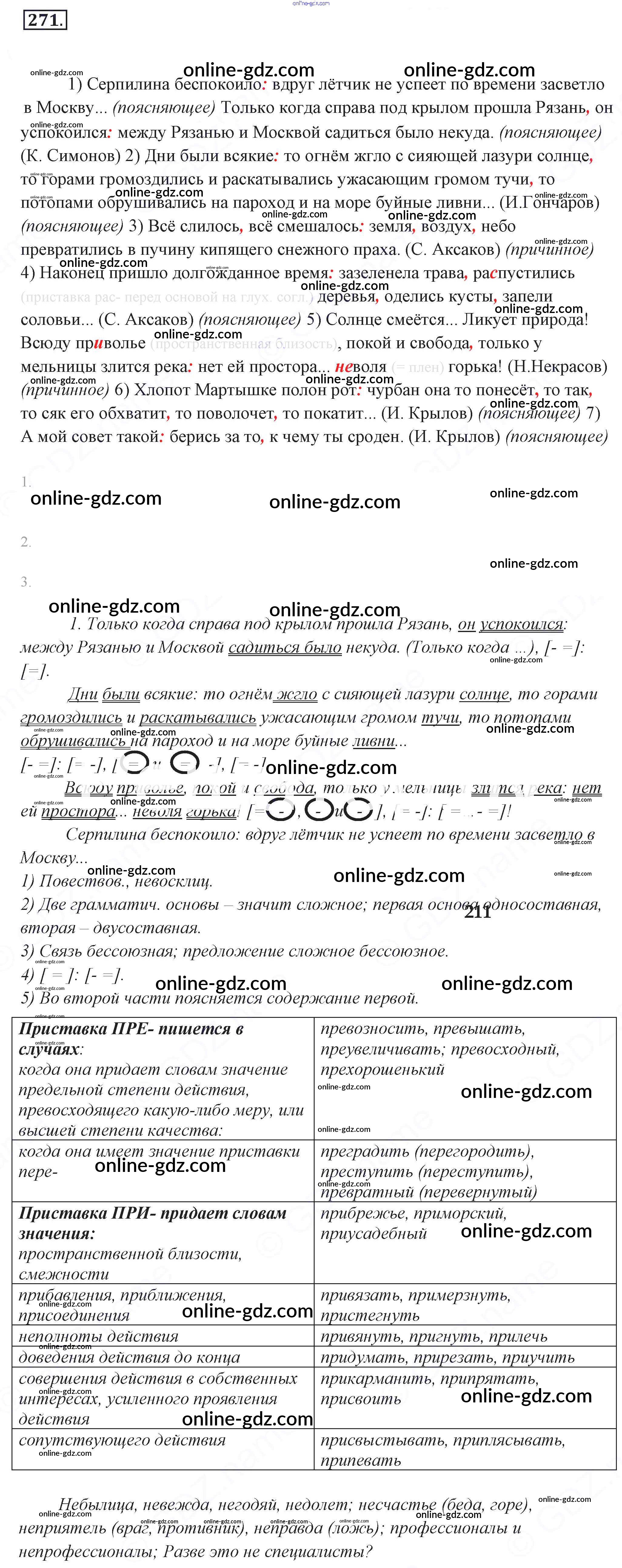 Готовые домашние задания по Русскому языку за 9 класс Учебник Разумовская, Львова Вертикаль 2018 - Упражнения 271