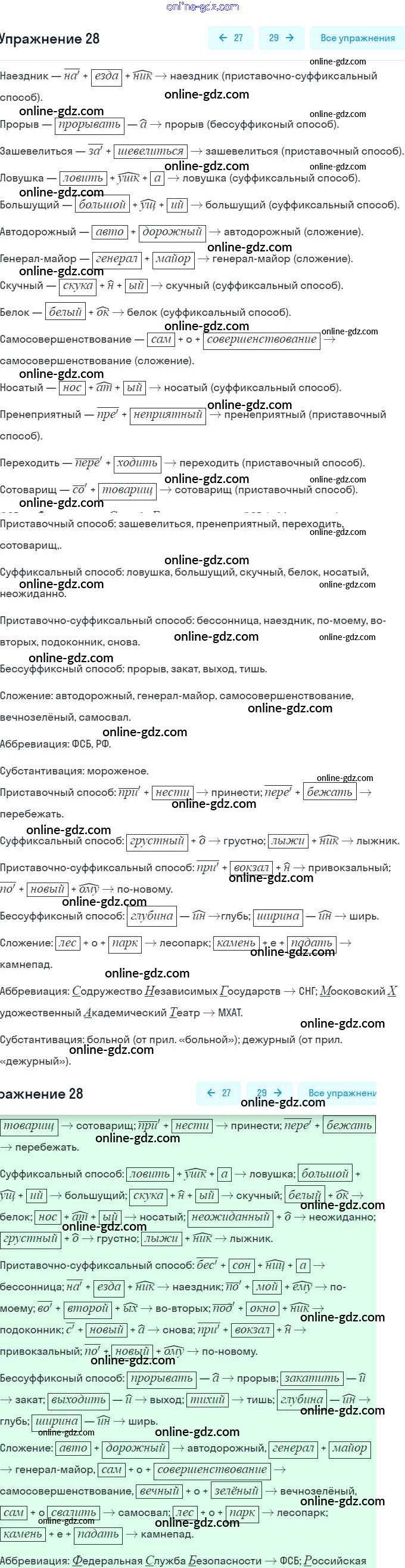Готовые домашние задания по Русскому языку за 9 класс Учебник Разумовская, Львова Вертикаль 2018 - Упражнения 28