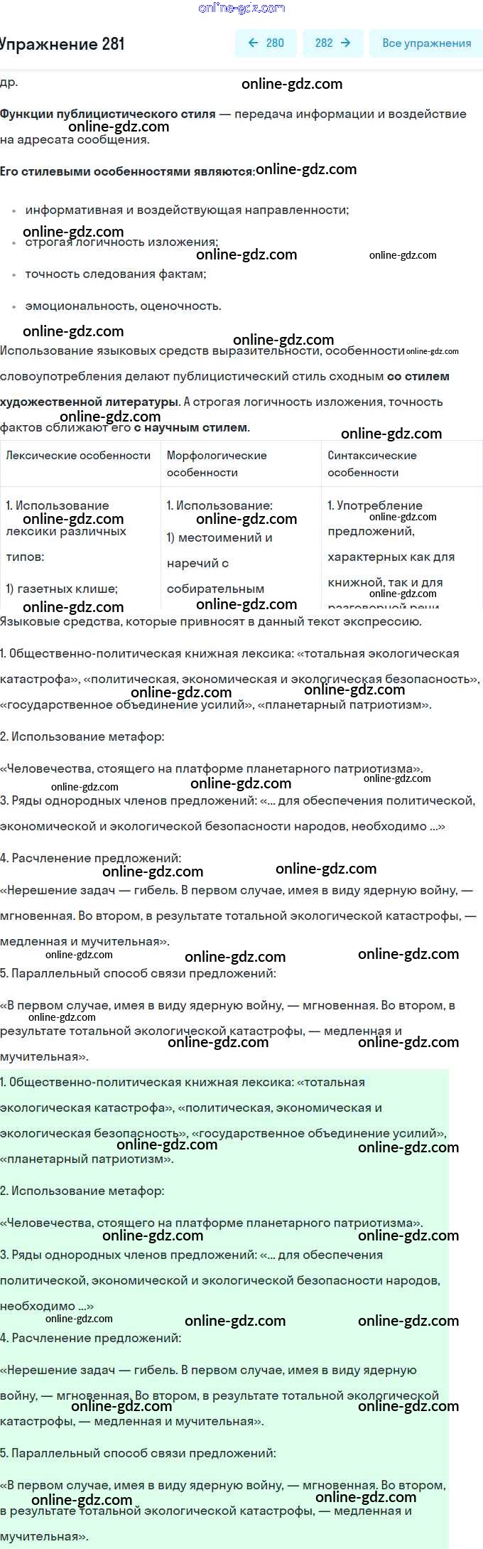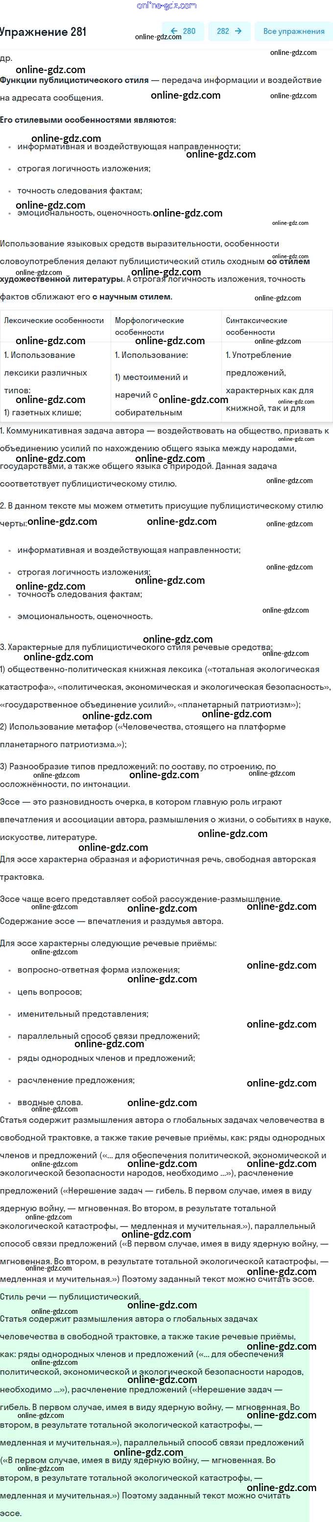 Готовые домашние задания по Русскому языку за 9 класс Учебник Разумовская, Львова Вертикаль 2018 - Упражнения 281