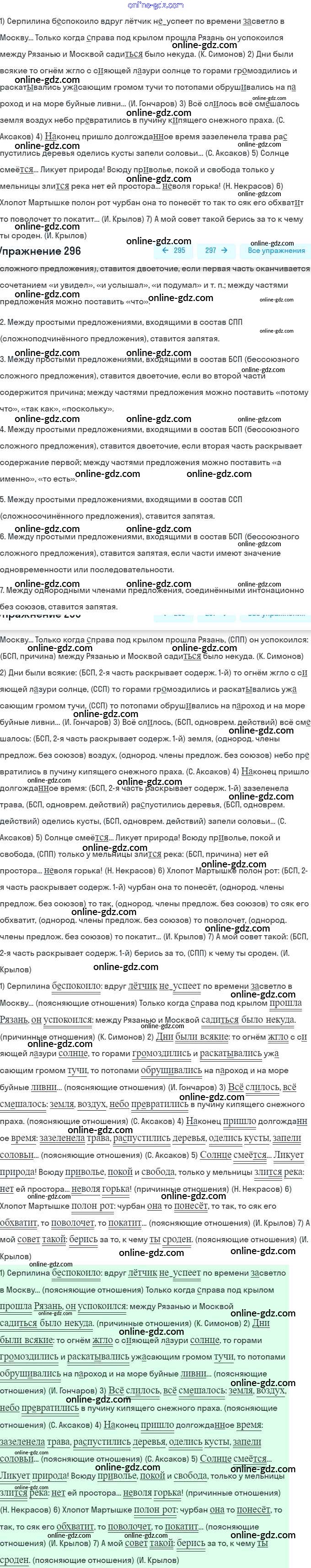 Готовые домашние задания по Русскому языку за 9 класс Учебник Разумовская, Львова Вертикаль 2018 - Упражнения 296