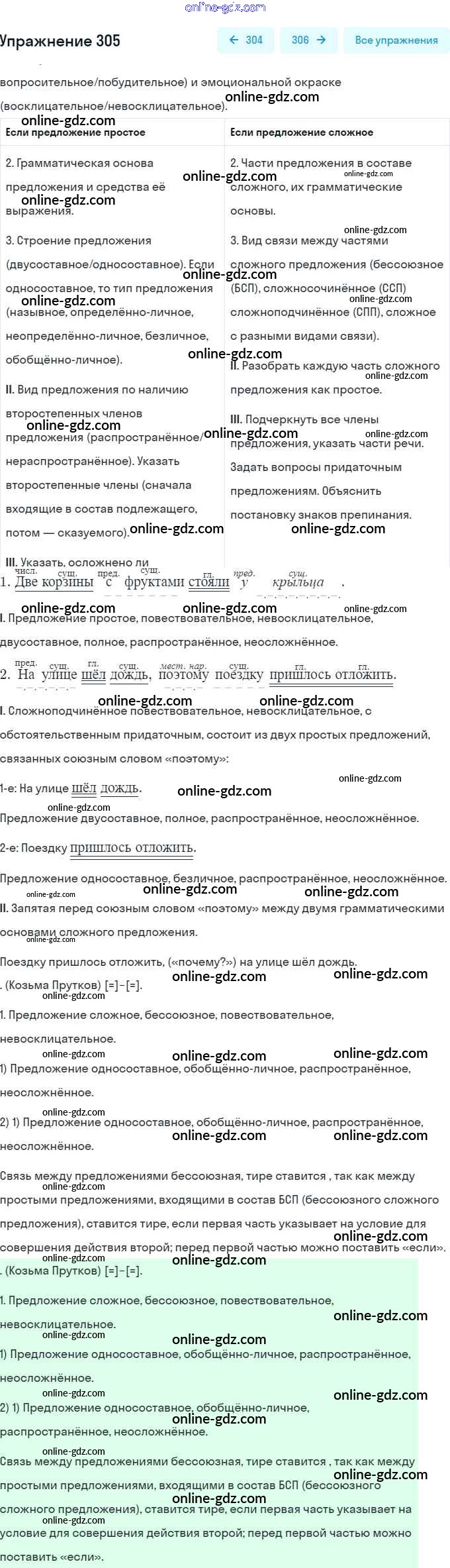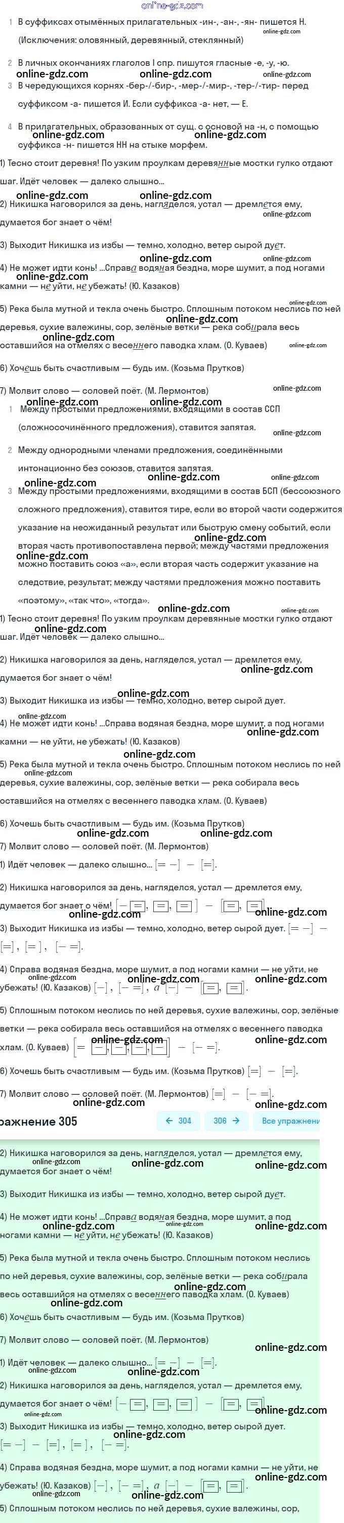 Готовые домашние задания по Русскому языку за 9 класс Учебник Разумовская, Львова Вертикаль 2018 - Упражнения 305