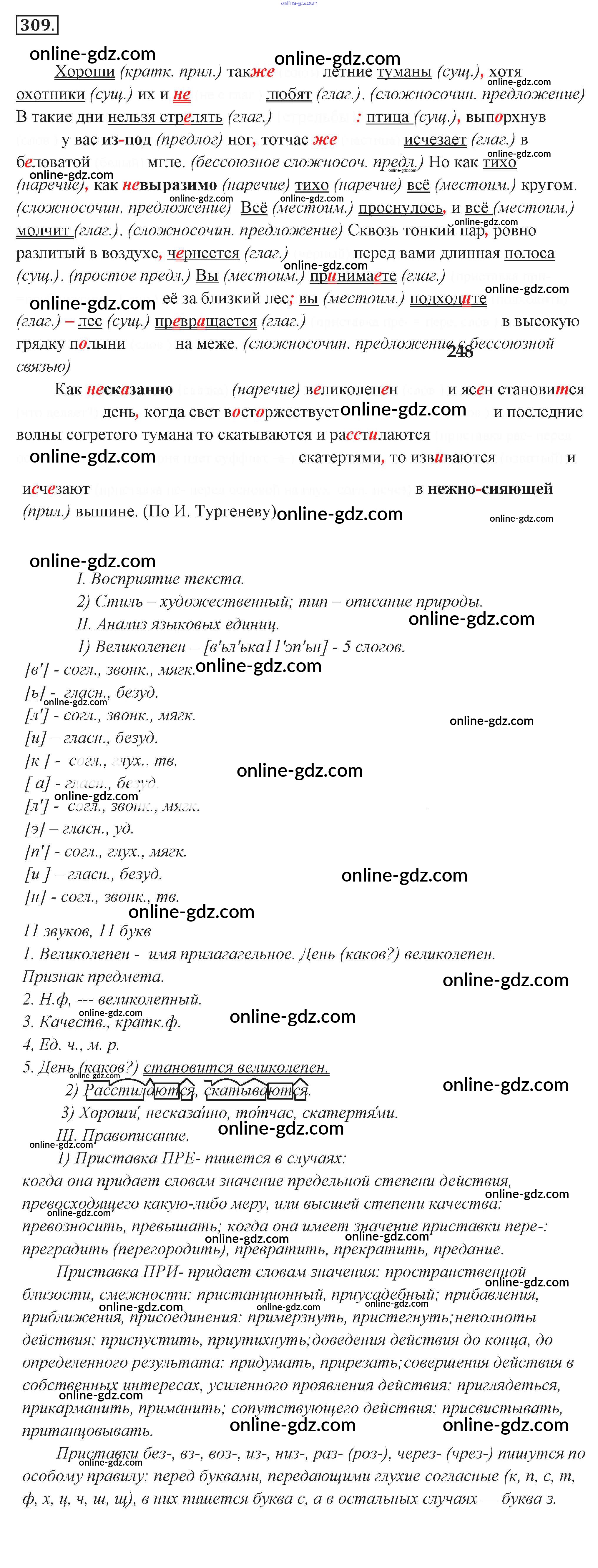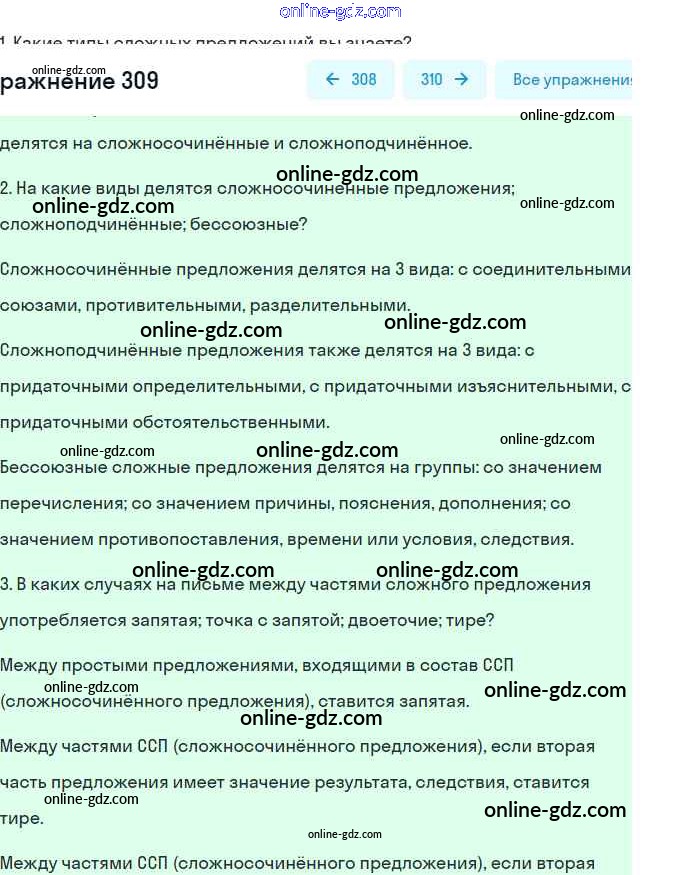 Готовые домашние задания по Русскому языку за 9 класс Учебник Разумовская, Львова Вертикаль 2018 - Упражнения 309