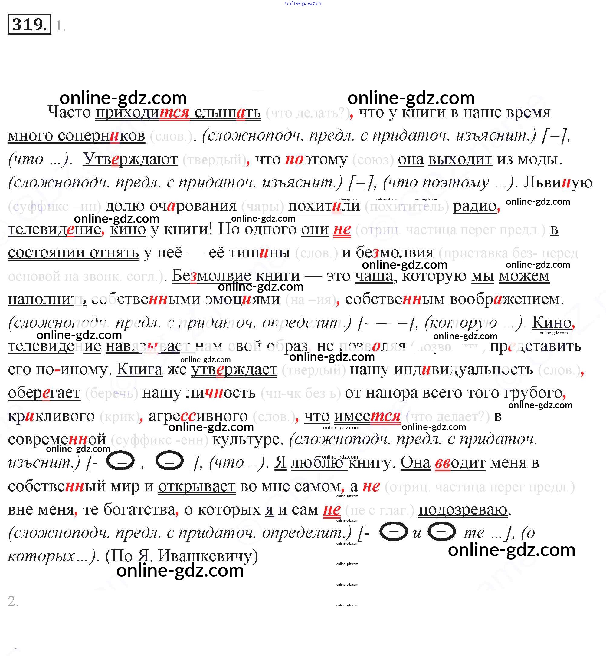 Готовые домашние задания по Русскому языку за 9 класс Учебник Разумовская, Львова Вертикаль 2018 - Упражнения 319
