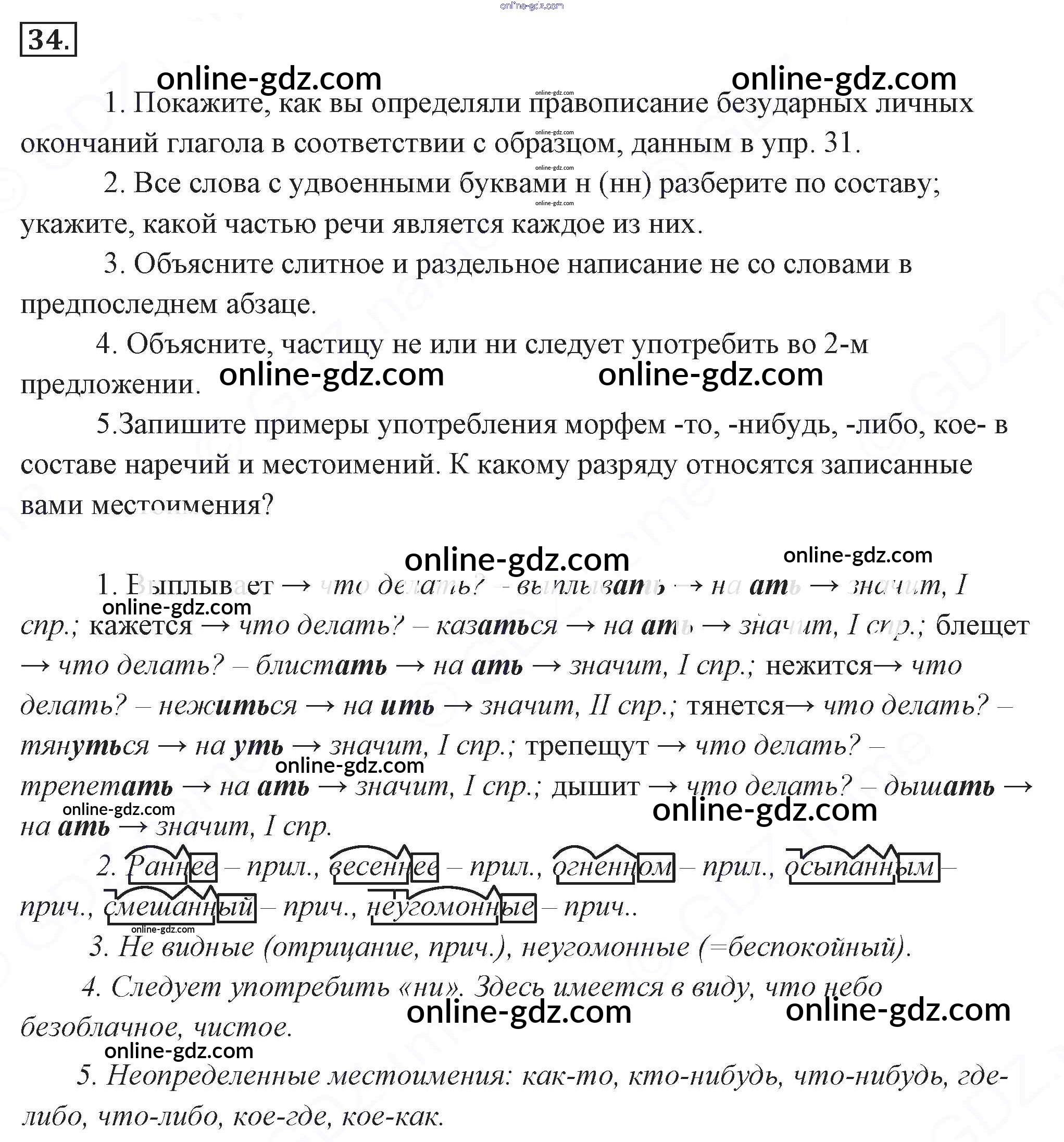 Готовые домашние задания по Русскому языку за 9 класс Учебник Разумовская, Львова Вертикаль 2018 - Упражнения 34