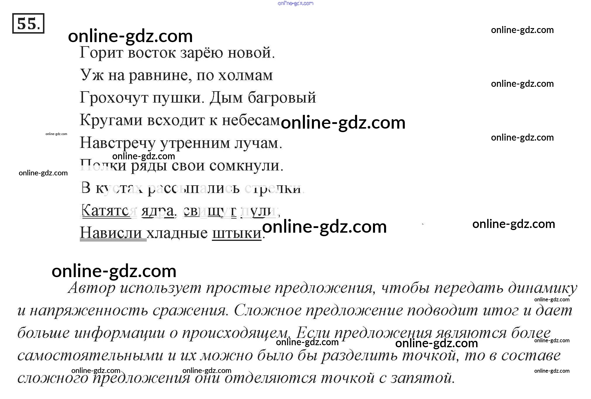 Готовые домашние задания по Русскому языку за 9 класс Учебник Разумовская, Львова Вертикаль 2018 - Упражнения 55