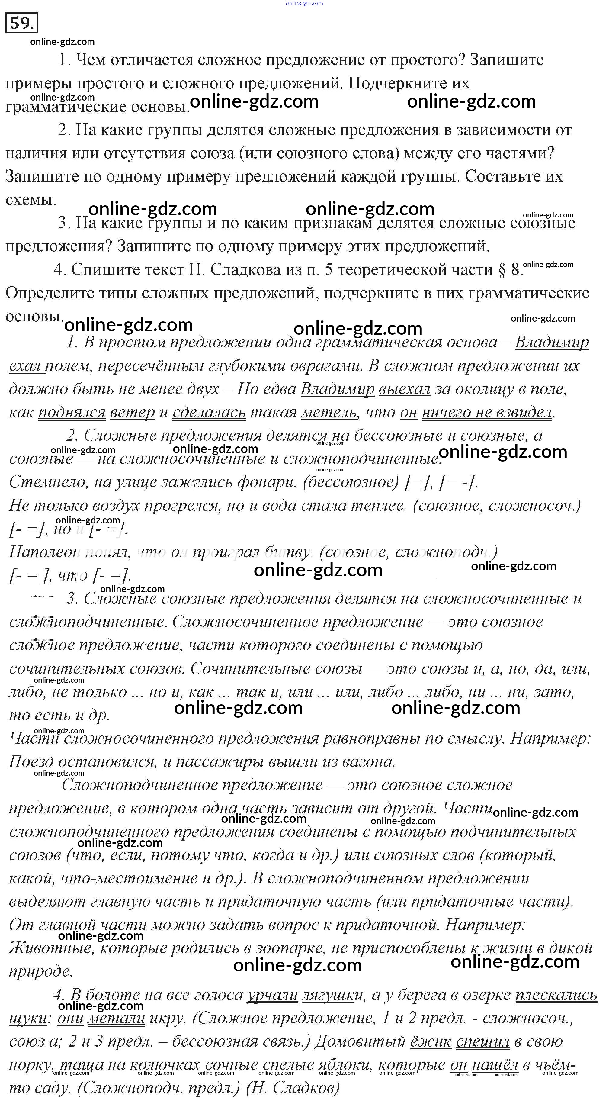 Готовые домашние задания по Русскому языку за 9 класс Учебник Разумовская, Львова Вертикаль 2018 - Упражнения 59