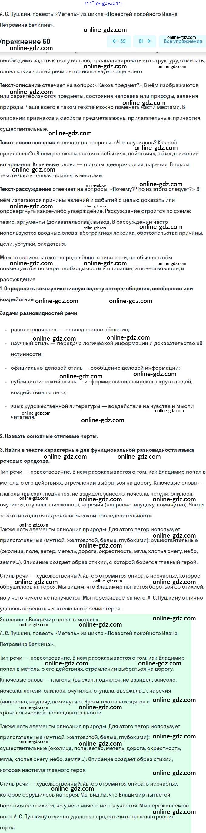 Готовые домашние задания по Русскому языку за 9 класс Учебник Разумовская, Львова Вертикаль 2018 - Упражнения 60