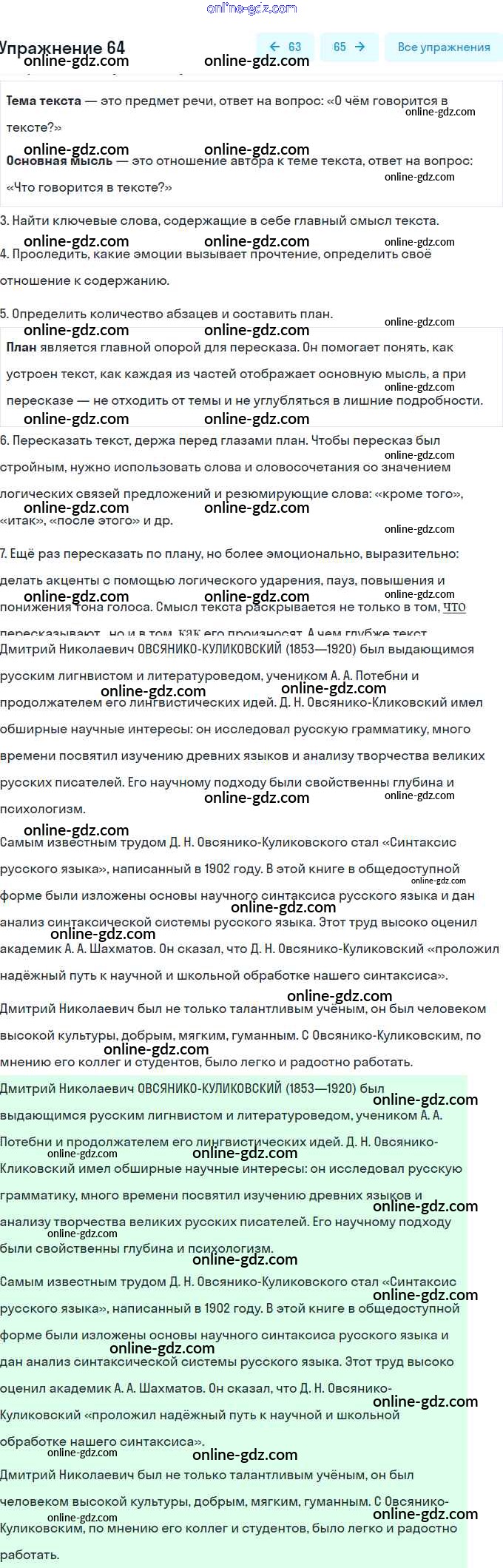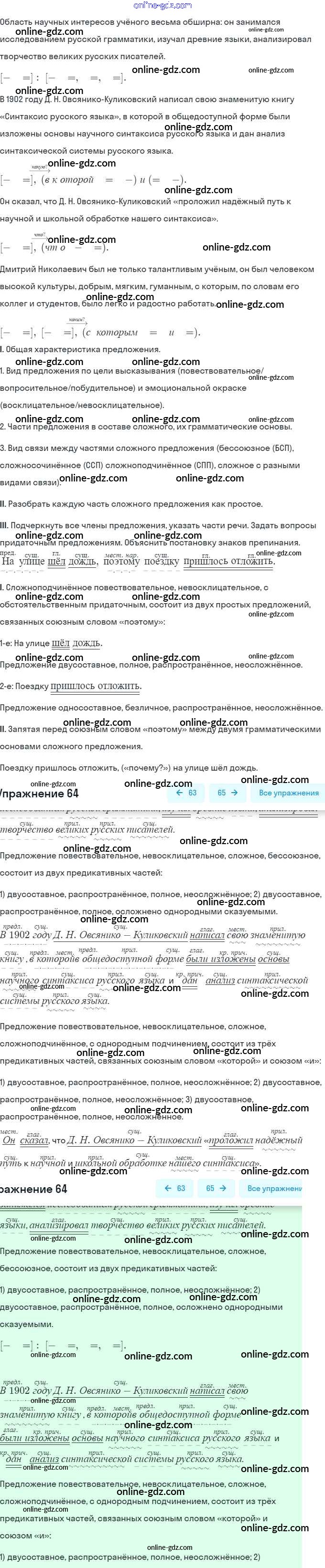 Готовые домашние задания по Русскому языку за 9 класс Учебник Разумовская, Львова Вертикаль 2018 - Упражнения 64