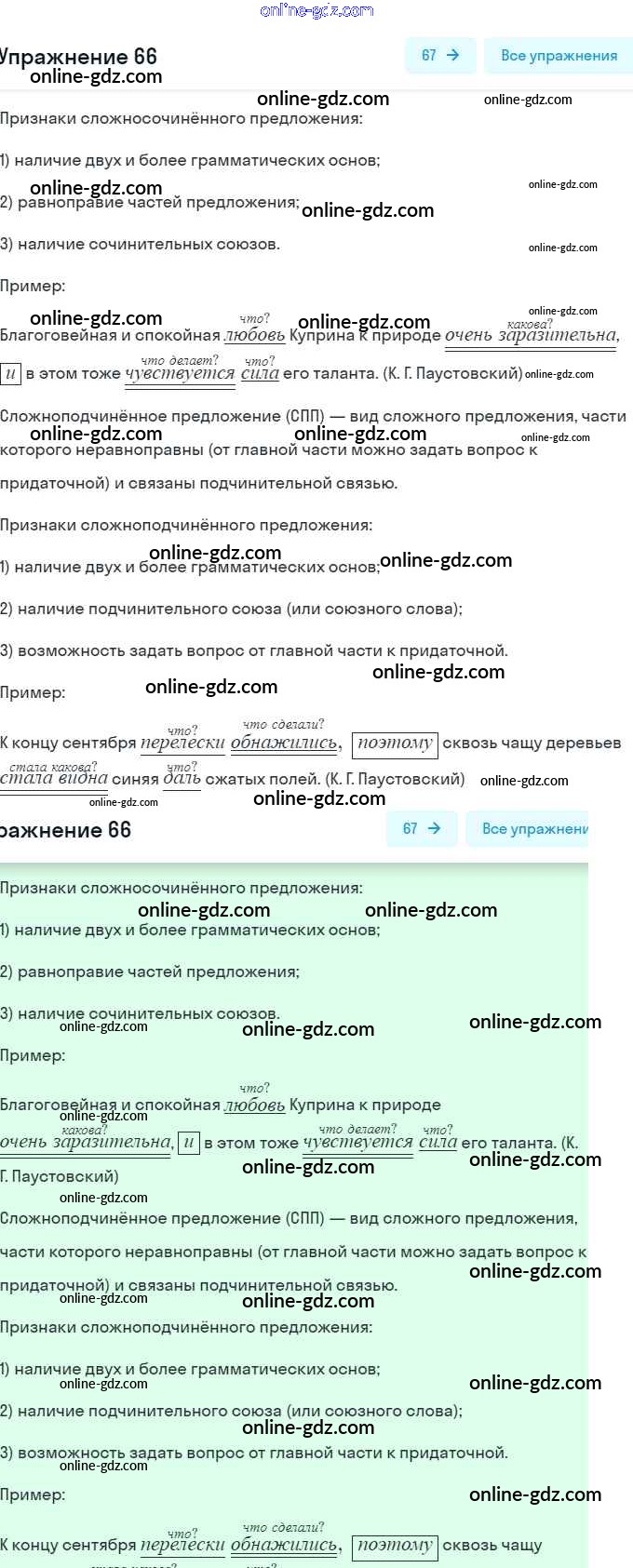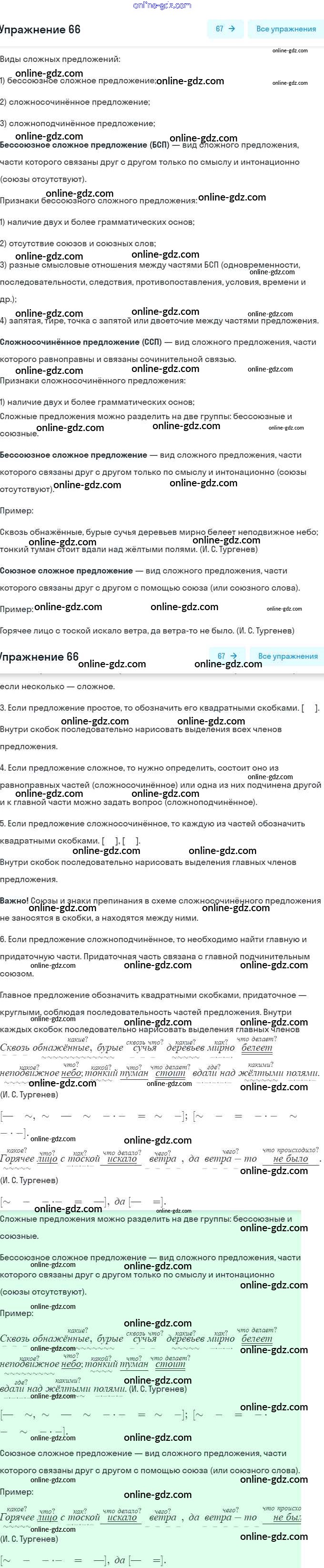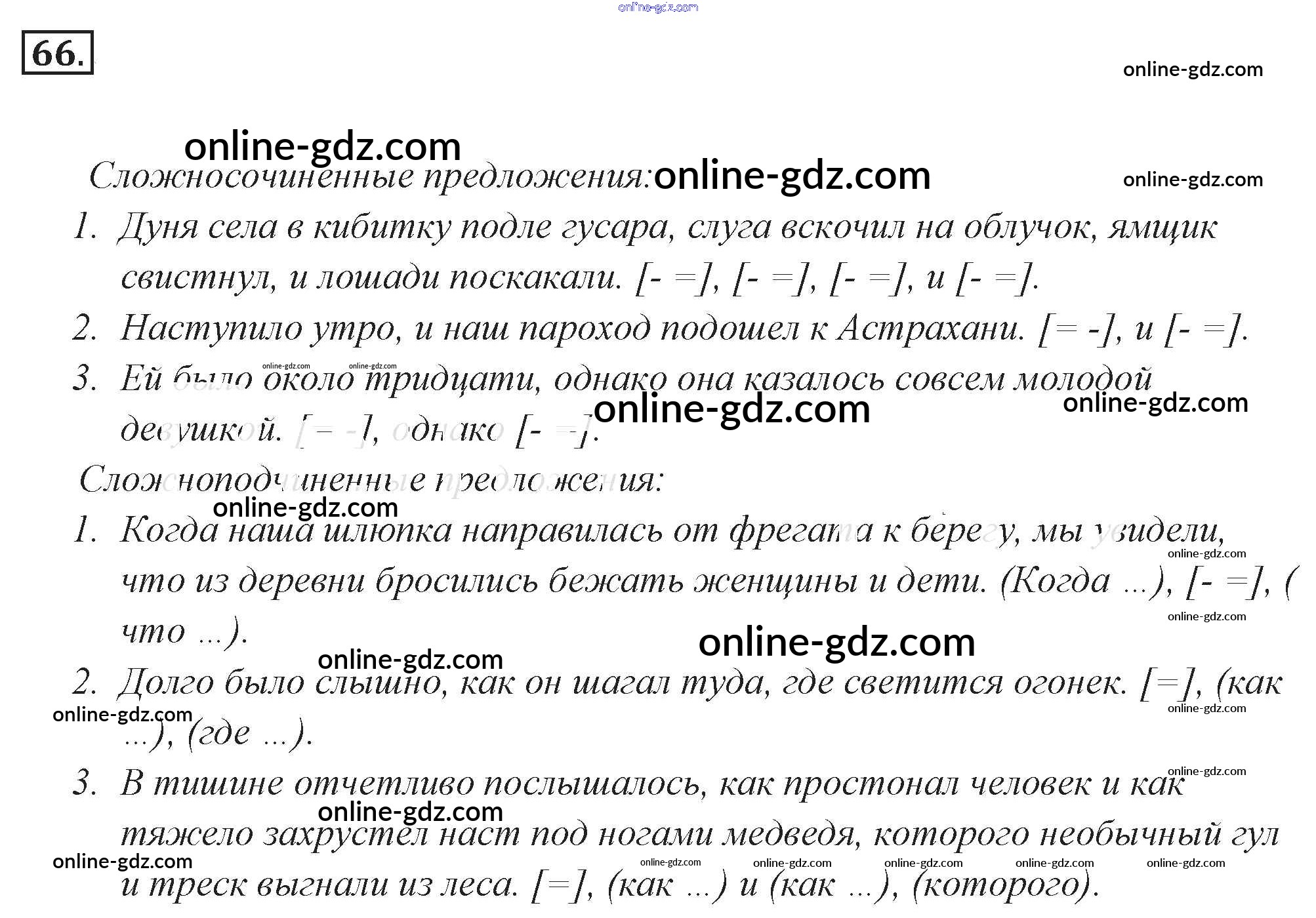 Готовые домашние задания по Русскому языку за 9 класс Учебник Разумовская, Львова Вертикаль 2018 - Упражнения 66