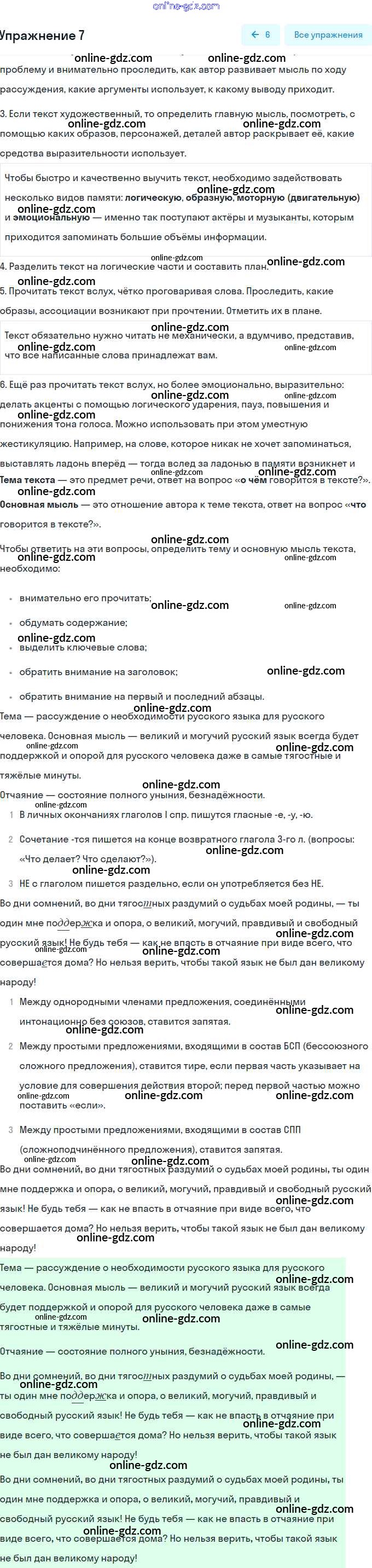 Готовые домашние задания по Русскому языку за 9 класс Учебник Разумовская, Львова Вертикаль 2018 - Упражнения 7