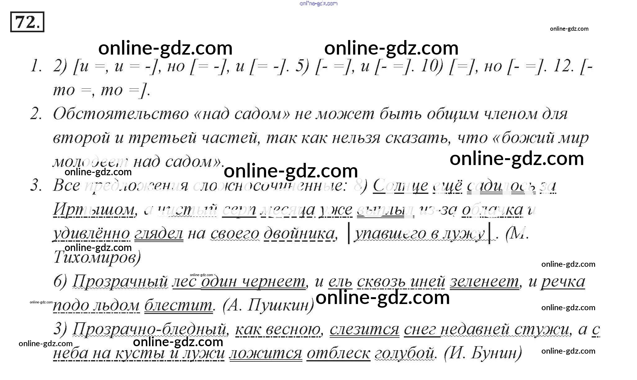 Готовые домашние задания по Русскому языку за 9 класс Учебник Разумовская, Львова Вертикаль 2018 - Упражнения 72