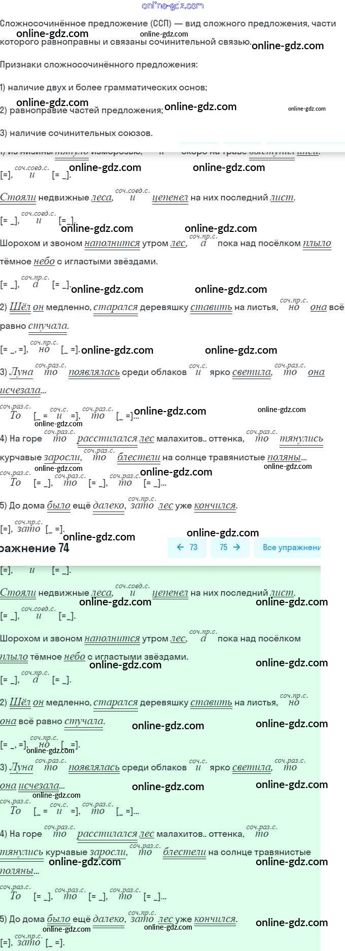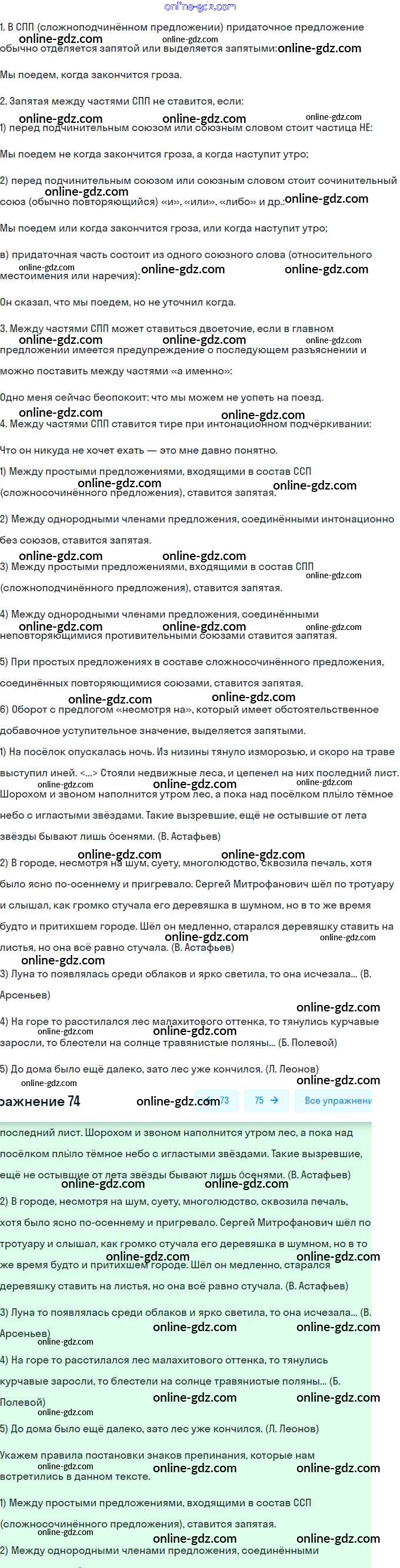 Готовые домашние задания по Русскому языку за 9 класс Учебник Разумовская, Львова Вертикаль 2018 - Упражнения 74