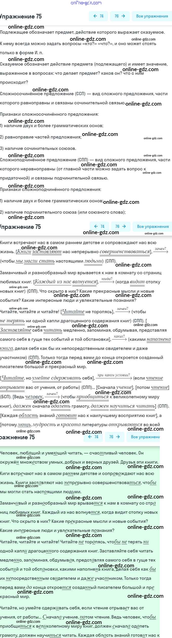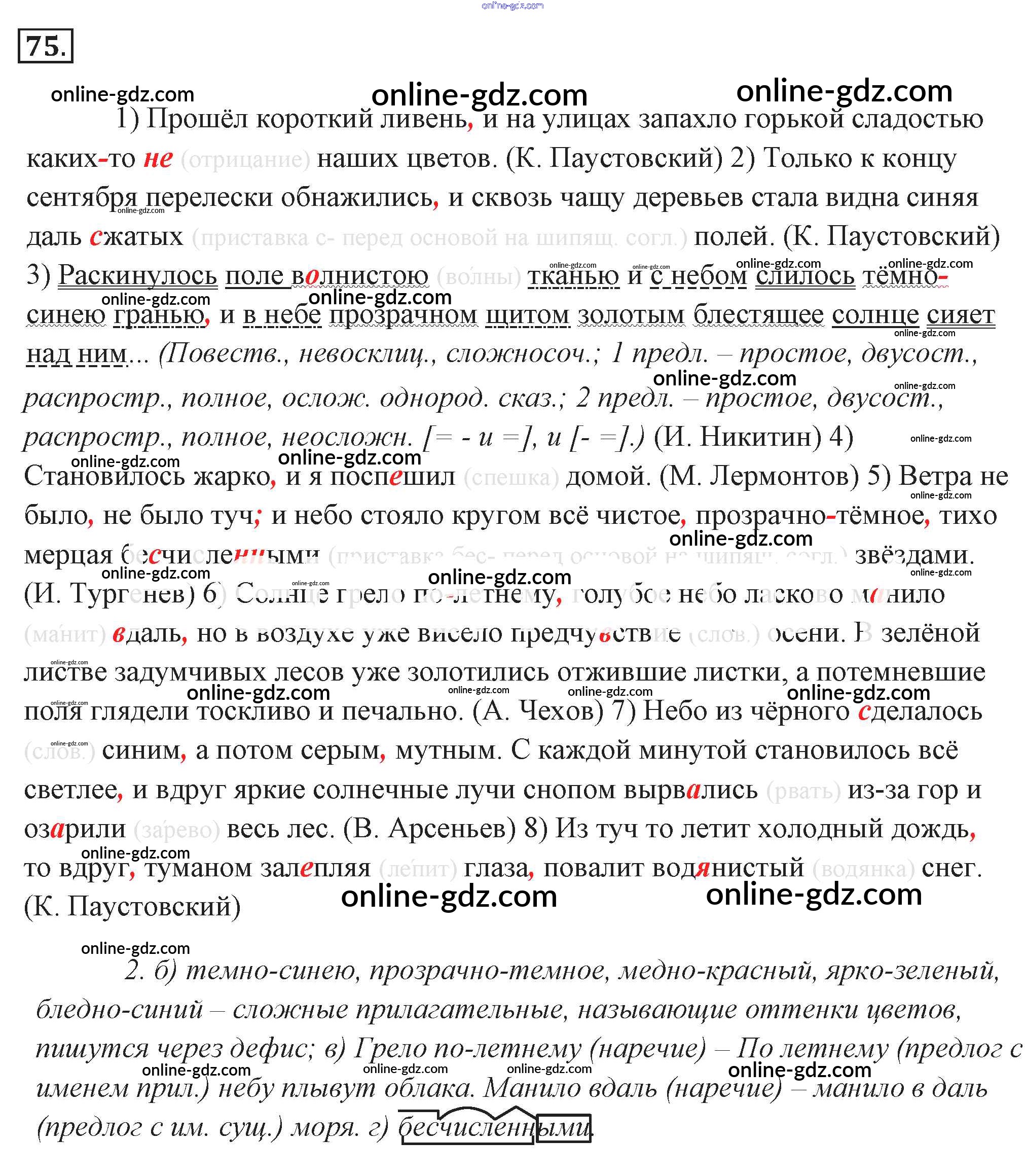 Готовые домашние задания по Русскому языку за 9 класс Учебник Разумовская, Львова Вертикаль 2018 - Упражнения 75