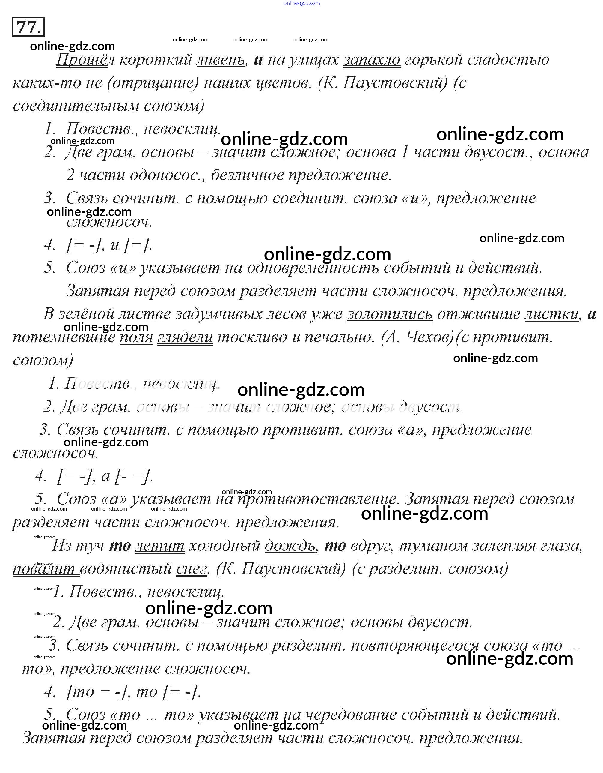 Готовые домашние задания по Русскому языку за 9 класс Учебник Разумовская, Львова Вертикаль 2018 - Упражнения 77